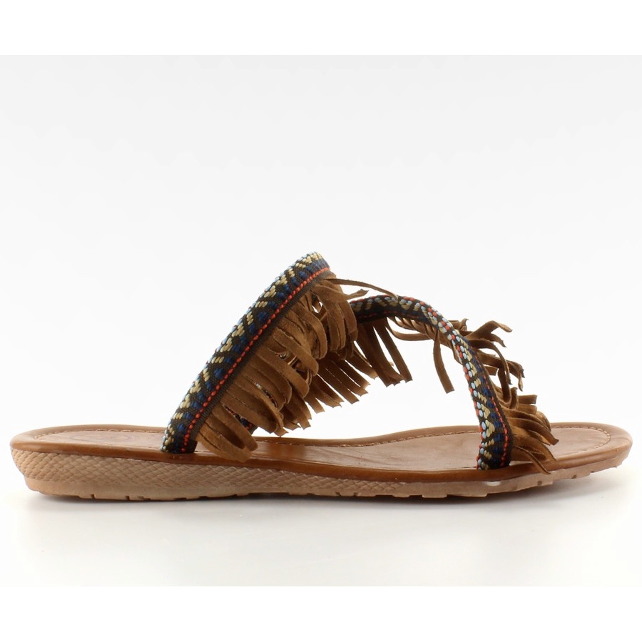 Die zehenstegsandalen verfügen über eine praktische Schlaufe für den großen Zeh, die für hervorragenden Halt und Stabilität bei jedem Schritt sorgt. Verziert mit bunten Fransen und Bändern mit indischen Mustern verleihen sie einen einzigartigen Charakter und passen perfekt zu den Boho- und Casual-Trends.
