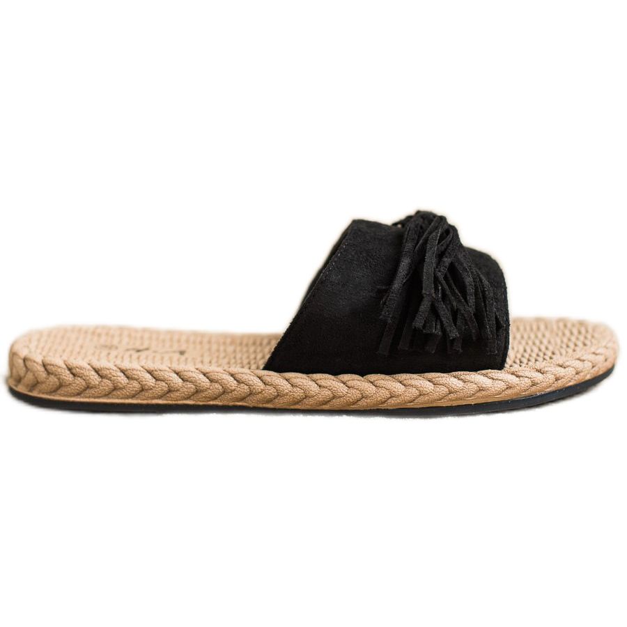 SHELOVET SHELOVET Hausschuhe mit Fransen schwarz