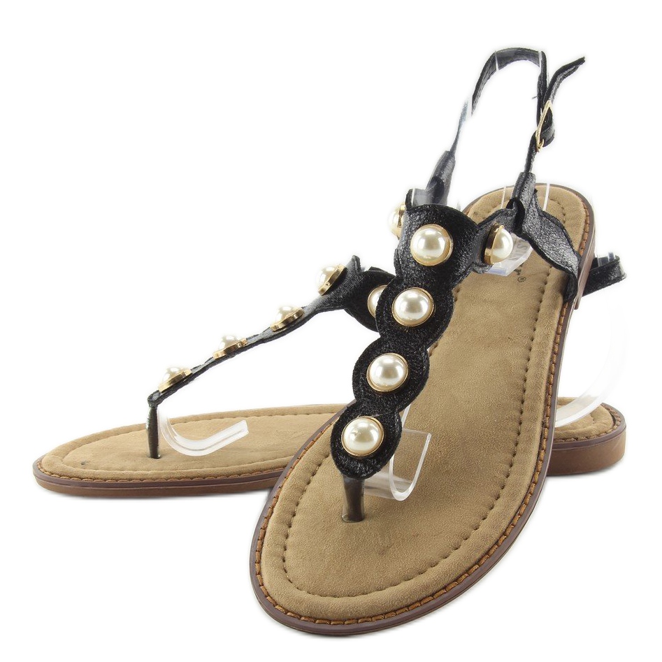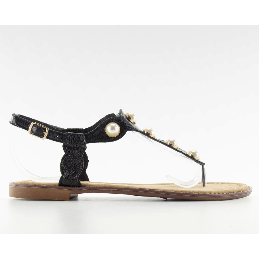 Inna marka Flip-Flops mit großen Perlen LL-75 Schwarz