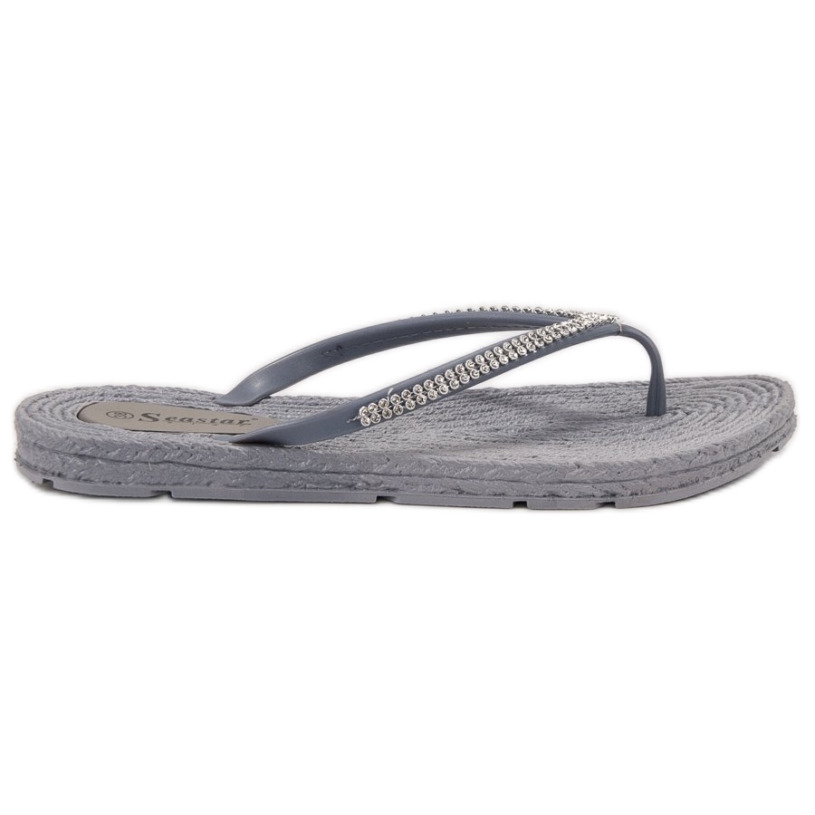 Entdecken Sie Eleganz und Komfort in neuen Produkten der Marke Seastar! Graue zehenstegsandalen mit Strasssteinen sind die perfekte Wahl für Sommertage, an denen Sie stilvoll aussehen und sich wohl fühlen möchten. Dank des offenen Absatzes und des Slip-on-Designs sind diese zehenstegsandalen nicht nur modisch, sondern auch äußerst praktisch.