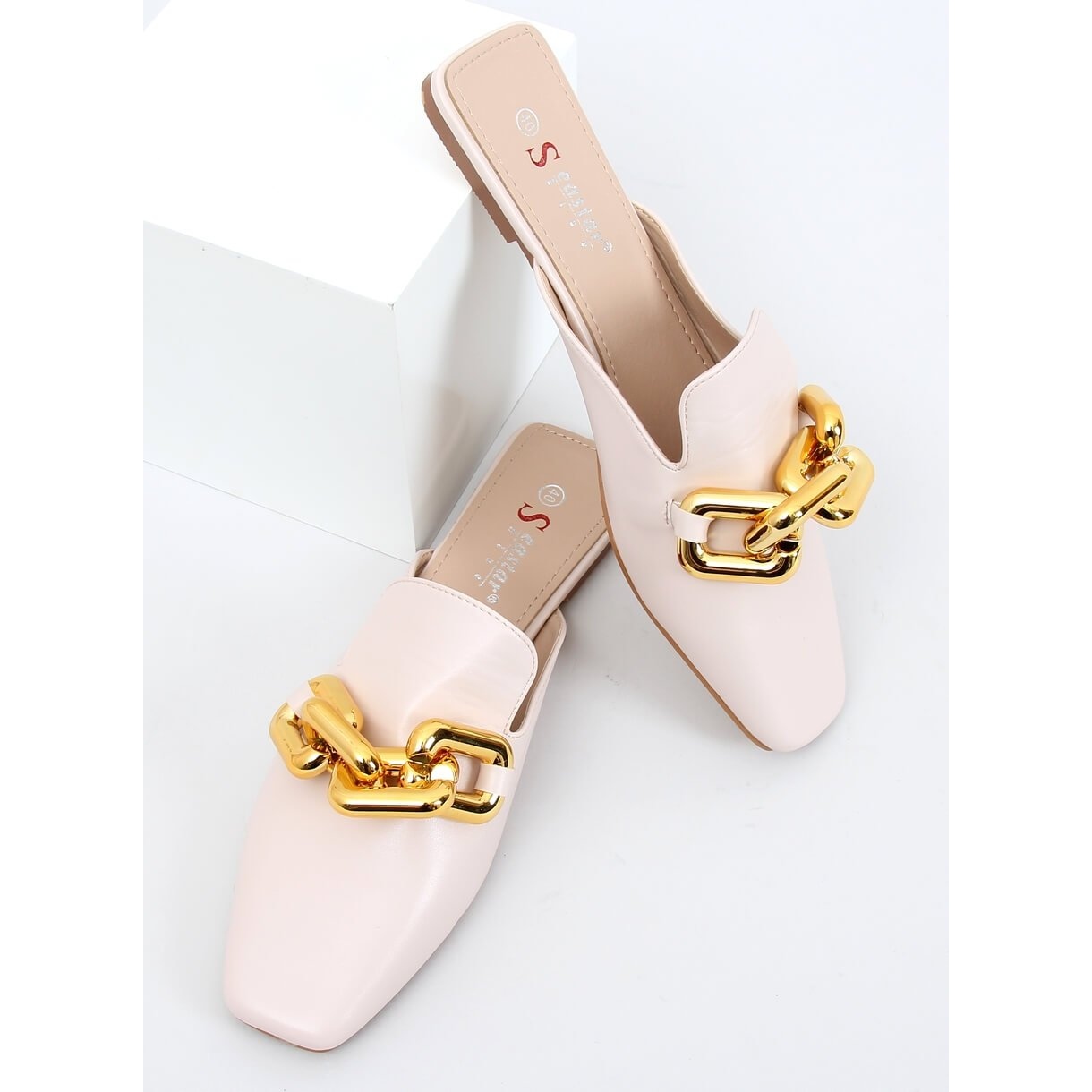 Geschmackvolle Frauenruhen aus ökologischem Leder, die klassische Einfachheit mit modischen Details verbinden. Das Modell zeichnet sich durch eine stilvolle goldene Kette vorne und eine moderne, quadratische Nase aus - dank dessen sehen die Schuhe feminin und extrem modisch aus. Eine flache Sohle und ein weicher Eco -Ledereinsatz sorgen für Komfort auch beim längeren Tragen.