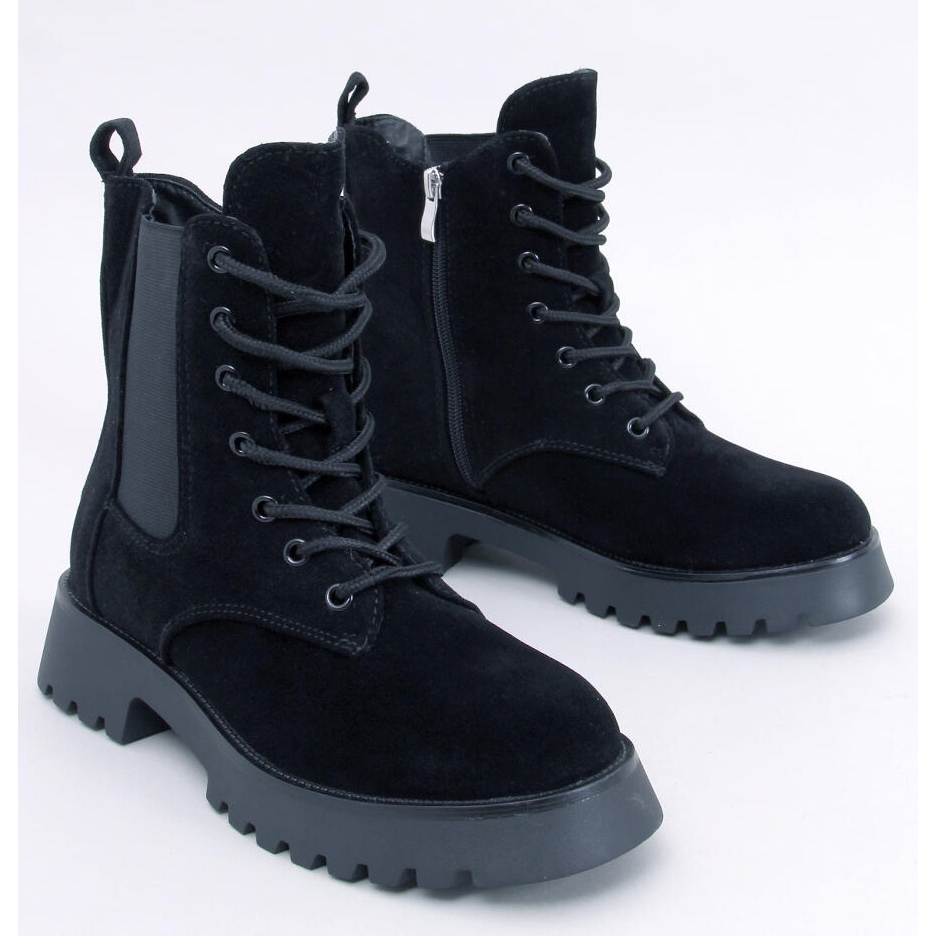 Franti Black Lace -UP -Checker - Elegante und praktische Stiefel, die in alltäglichen und städtischen Stilisierungen funktionieren. Schwarzes ökologisches Wildleder, empfindliches Fell im Inneren und eine stabile Plattform verleihen ihnen einen universellen, modischen Charakter und gewährleisten gleichzeitig Komfort.