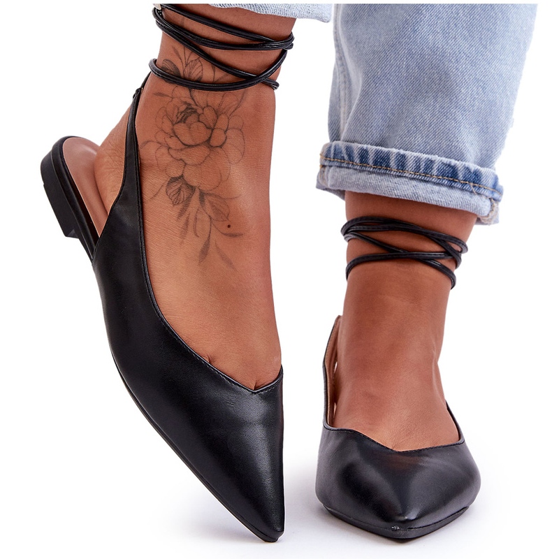 Die gebundenen schwarzen Ballerinas der Frauen sind stilvoll, schwarze Frauen -Ballerinas mit offener Ferse und Nase im Spitz. Sie bestehen aus ökologischem Leder. Die Einzigartigkeit dieser Ballerinas wird durch die Bindung um das Kalb betont. Der ökologische Ledereinsatz bietet Komfort im Tragen und eine flache Ferse und eine nicht -slipe Sohle -Garantie -Stabilität. Ballerinas sind ein großartiges Modell für wärmere Tage. Ballerinas wiegen nur 420 Gramm, was sie leicht und leicht zu tragen macht.