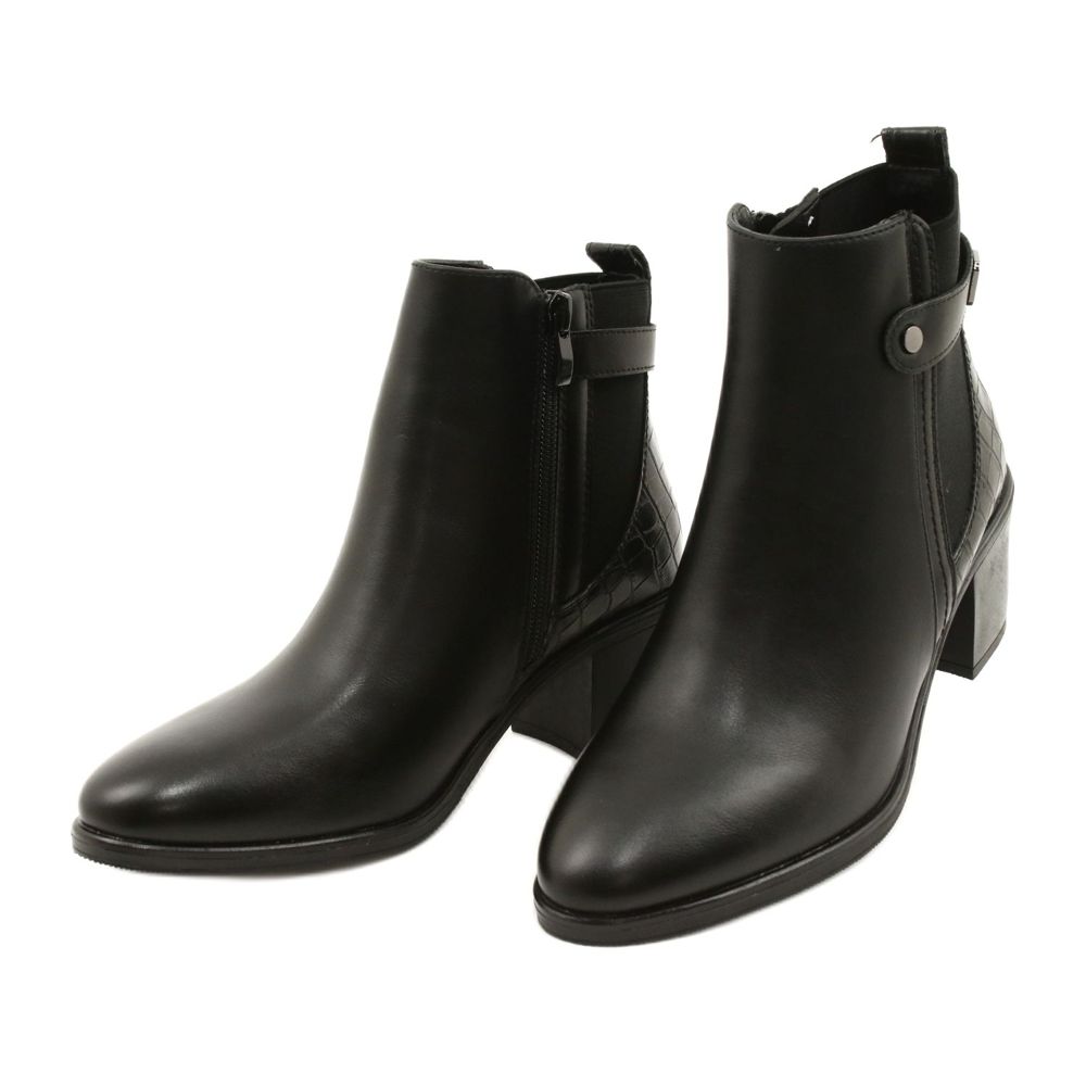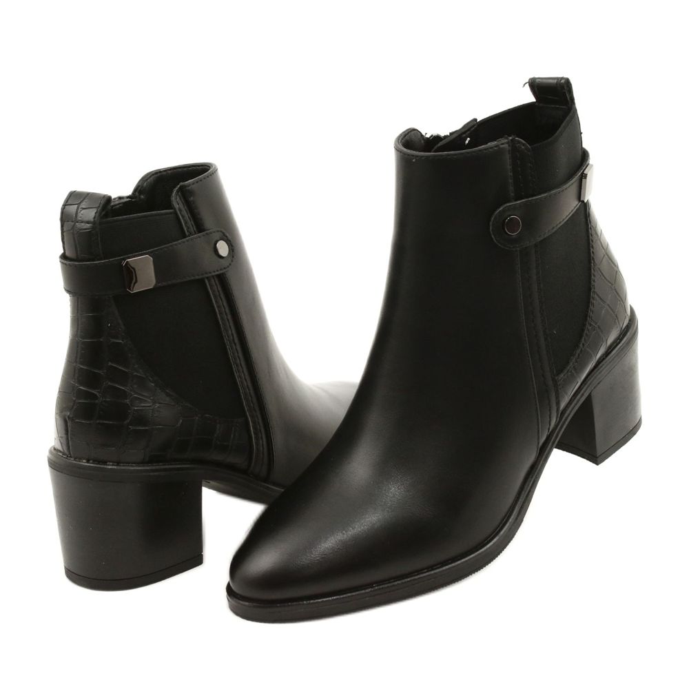 Stilvoll, universell und sorgfältig gemacht - das sind Sergio Leone BT630 -Stiefel. Schwarzes ökologisches Leder in Kombination mit einer subtilen Tierdekoration mit einem Befestigungselement und einer zarten Dekoration auf der Seite erzeugen ein Modell, das sowohl in eleganten als auch in ungezwungenen Stylierungen funktioniert. Ein niedriger, stabiler Fersentyp (6 cm) verleiht dem ganzen Tag Komfort, und die abgerundete Nase betont die klassische Natur des Schuhs.