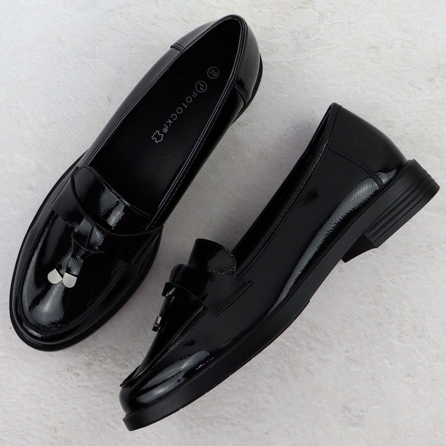 Entdecken Sie Eleganz und Bequemlichkeit mit lackierten Lords von Damen in Schwarz aus der Marke Potocki. Diese einzigartigen Schuhe aus hochwertigem, lackiertem ökologischem Leder sind eine Kombination aus Stil und Komfort, die in jeder Situation funktionieren.