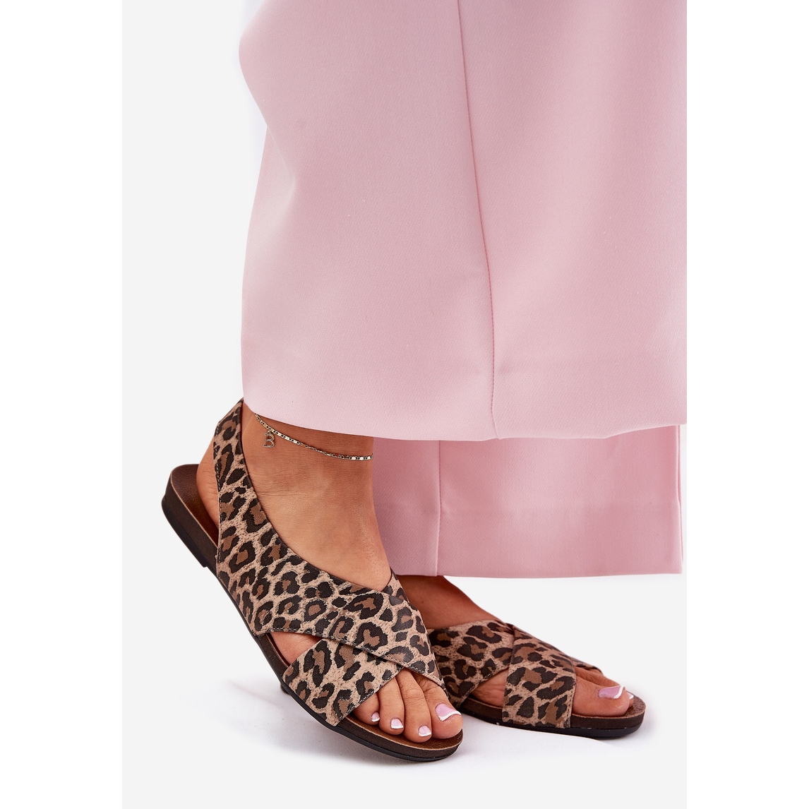 Zazoo Zazoo Frauen Ledersandalen brauner Leopard Leopard beige