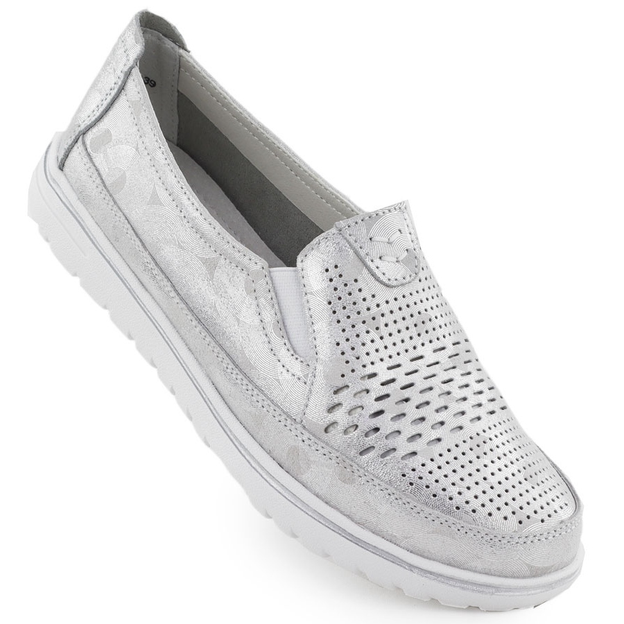 Damen -Lederschuhe Openwork Silver Evento 1653 sind die perfekte Wahl für Frauen, die Eleganz mit Komfort kombinieren möchten. Ihr einzigartiges, metallisches Silber- und Openwork -Schnitt macht sie zu einer perfekten Ergänzung zu jedem Sommerstilisierung und fügt seine Leichtigkeit und den einzigartigen Charakter hinzu.