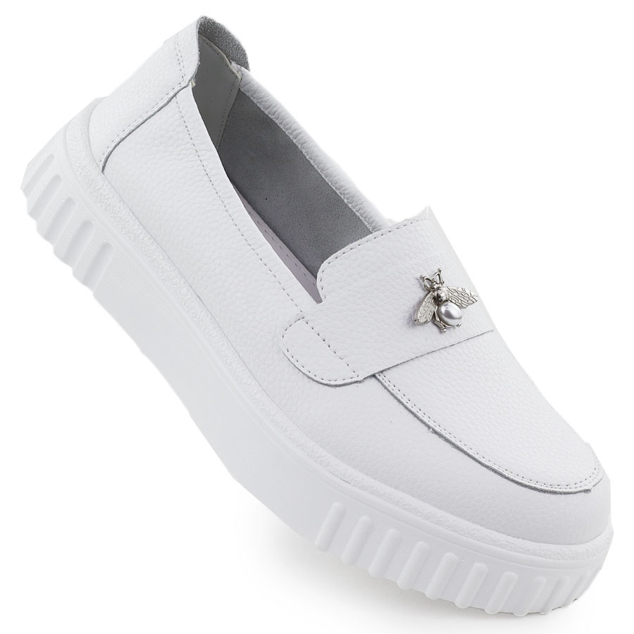 Frauen -Lederschuhe, weiße Vinceza 93204 -Ladungsstoffe sind ein ideales Angebot für Frauen, die sowohl Komfort als auch Stil schätzen. Diese eleganten Slipper aus hochwertigem natürlichen Leder kombinieren Klassiker mit modernem Design. Ihre weißen Farben machen sie perfekt in verschiedene Stylisationen, von lässiger bis hin zu eleganter.