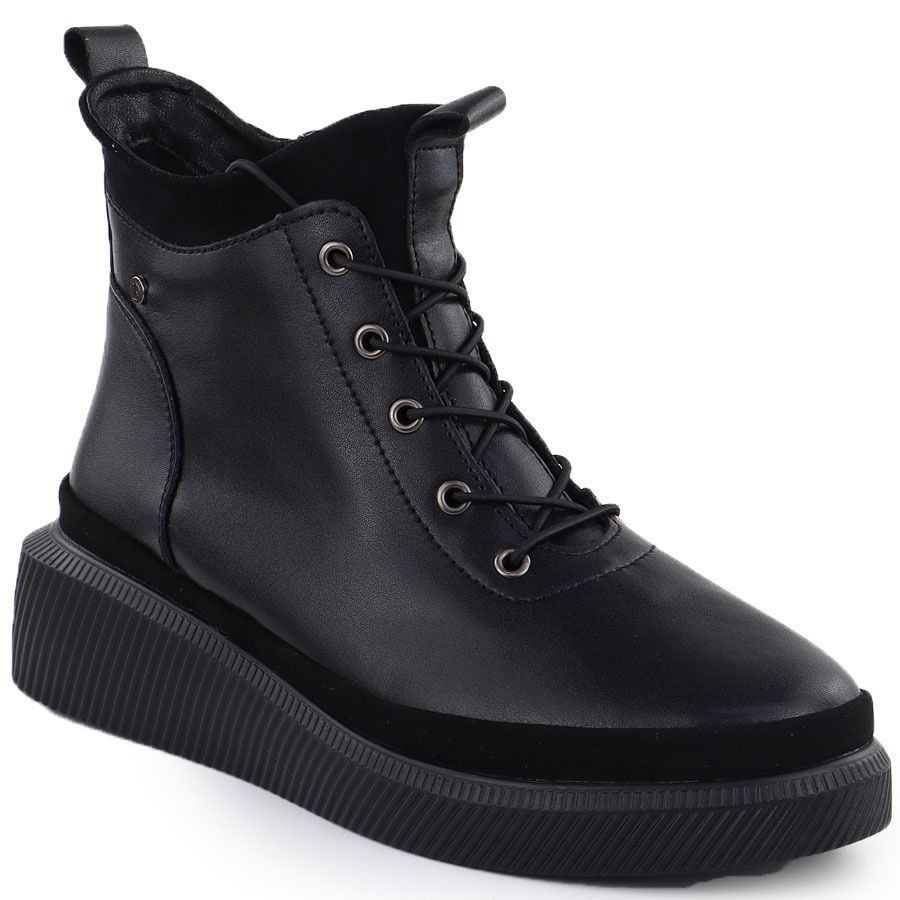 Details: Frauen Lederstiefel auf der Plattform isolierte schwarze Filippo DBT4799