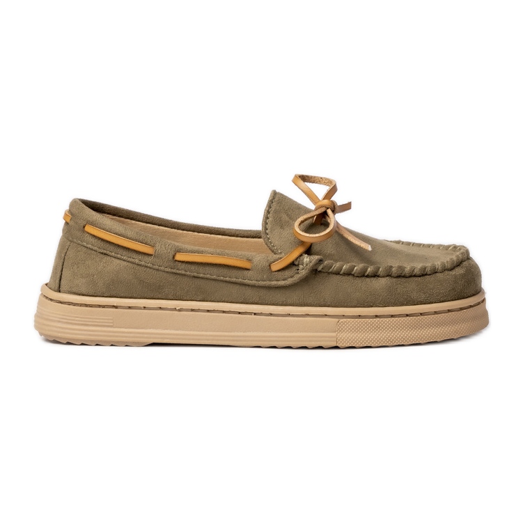 Die Hauptmerkmale des Produkts sind eine runde Nase und ein Gleitverschluss, was sie äußerst praktisch und bequem macht. Der grüne Schatten von Armeegrün bedeutet, dass Wildleder -Mokassins leicht mit verschiedenen Outfits kombiniert werden können und ein stabiles Flachferel viele Stunden lang Komfort garantiert.