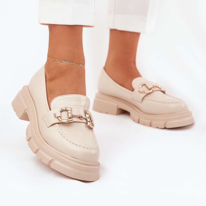 Abgerundete Nasen sorgen für den Komfort, den ganzen Tag zu tragen, und das subtile goldene Detail, das an der Vorderseite der Mokassins platziert wird, verleiht ihnen einen einzigartigen Charakter, der aussieht. Auf einer stabilen Plattform mit einer flachen 4 cm hohen Plattform garantieren diese Slipper nicht nur Leichtigkeit, sondern auch die Sicherheit von Schritten in jeder Situation.