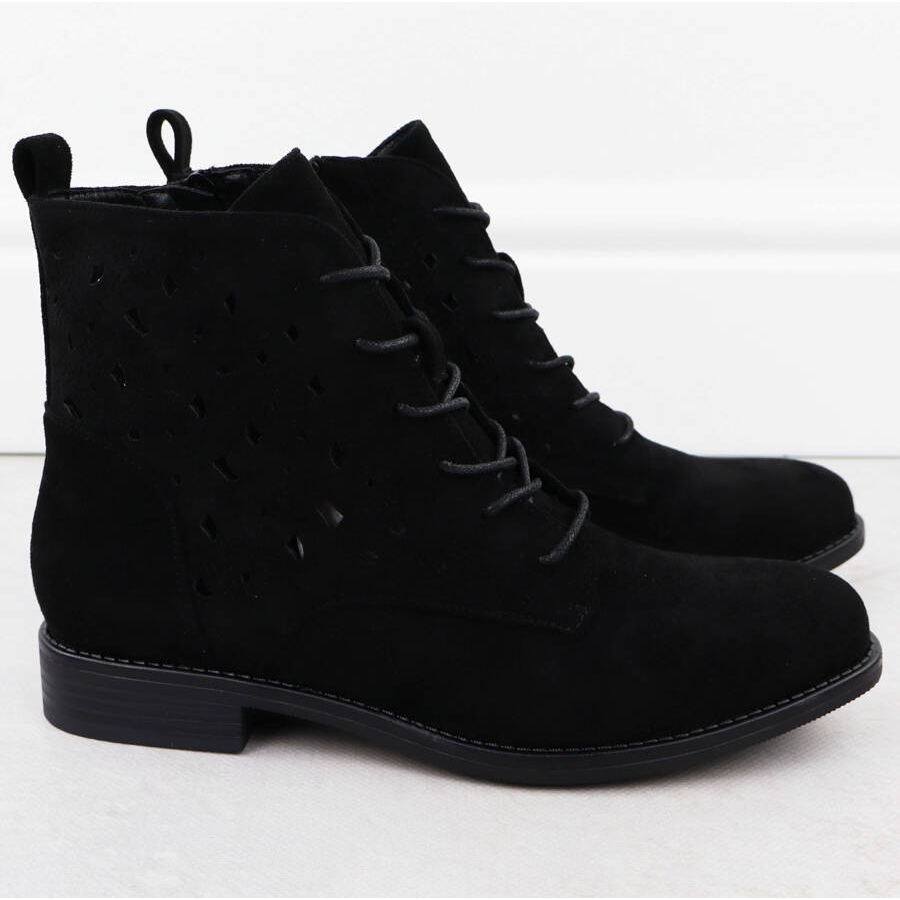 Stiefel aus hochwertigem ökologischem Leder aus Wildleder werden durch eine offene Dekoration unterschieden, die Ihren Stylisationen ein subtiles Leuchten verleiht. Das Innere der Schuhe wird mit natürlichen Leder erobert, was beim ganzen Tag Komfort garantiert. Dank der Stofffutter haben die Füße eine ausreichende Belüftung.