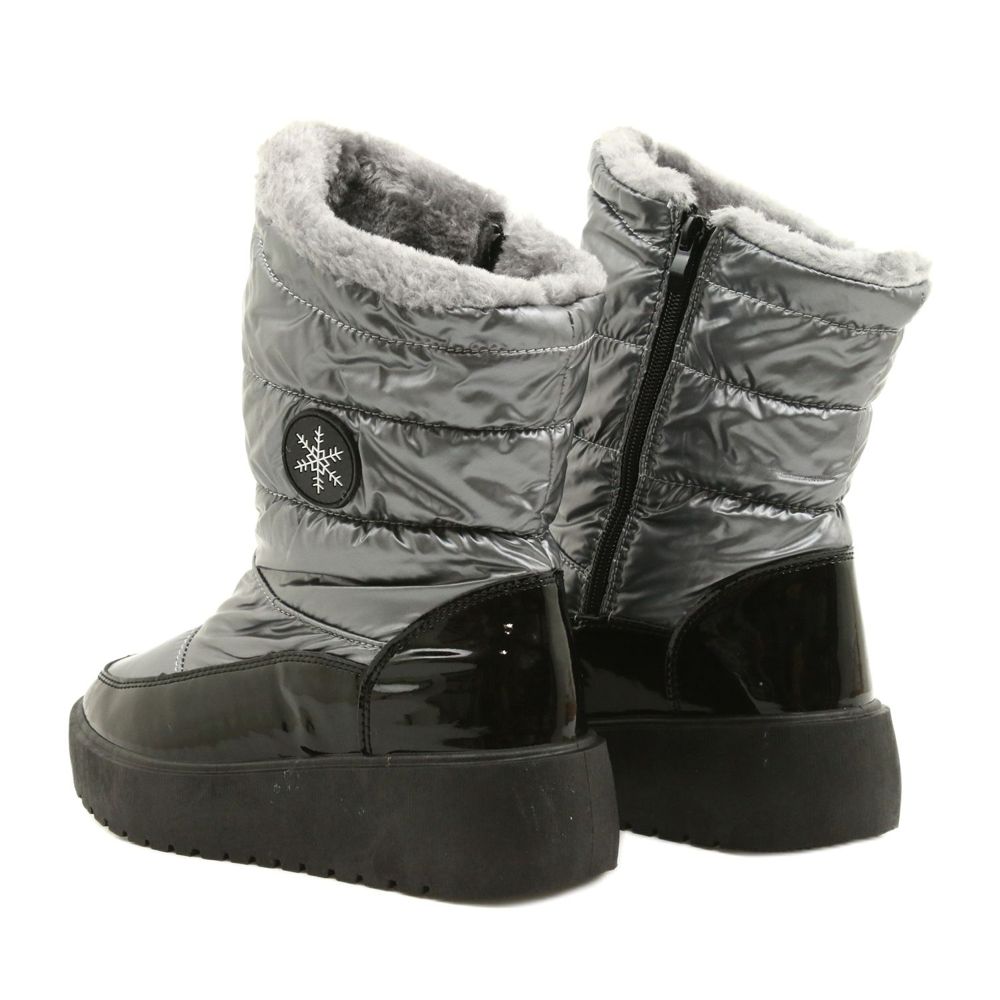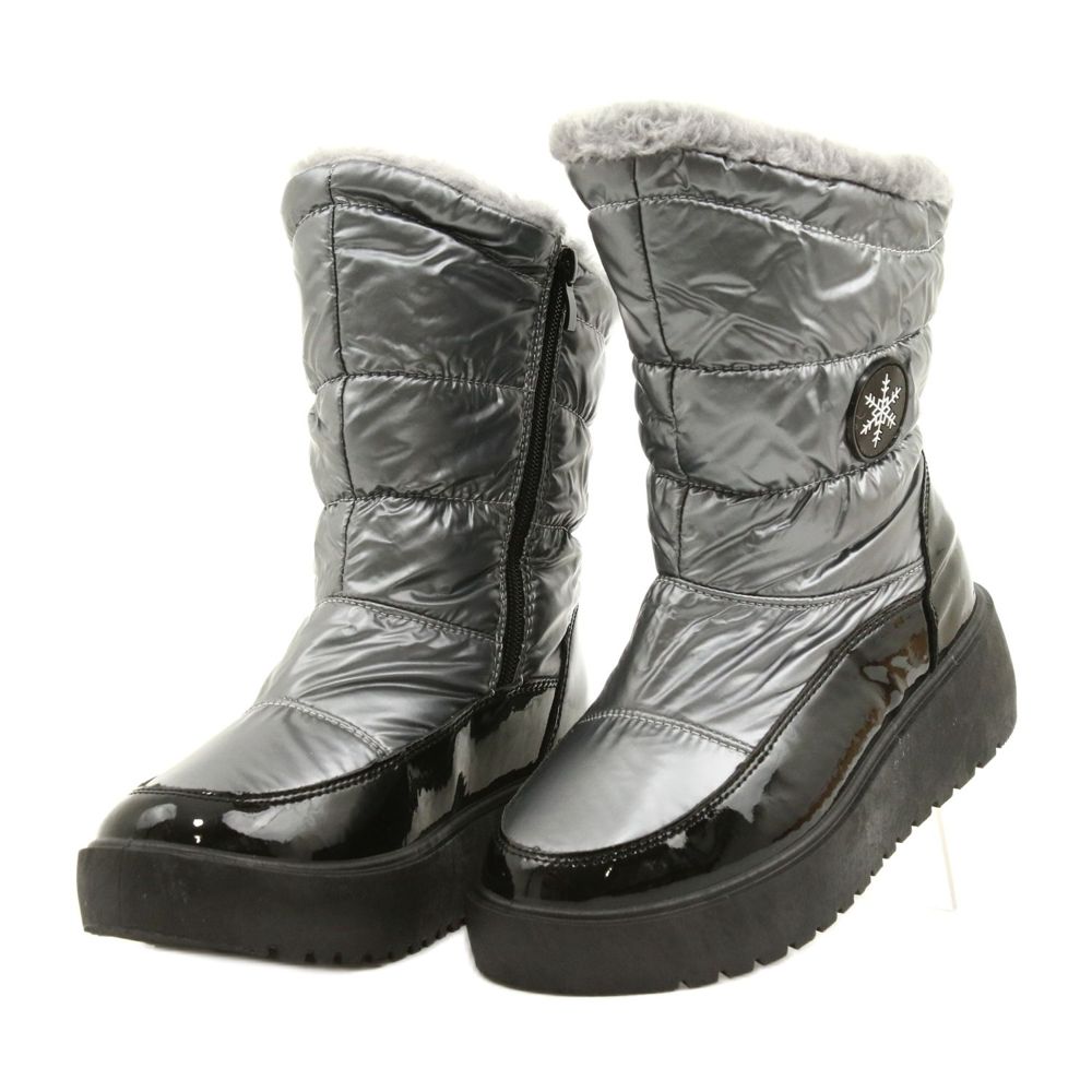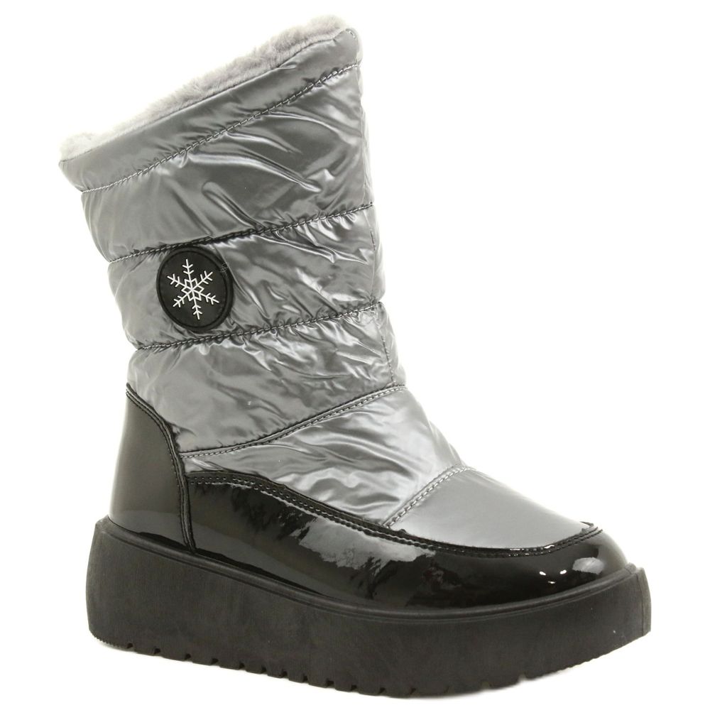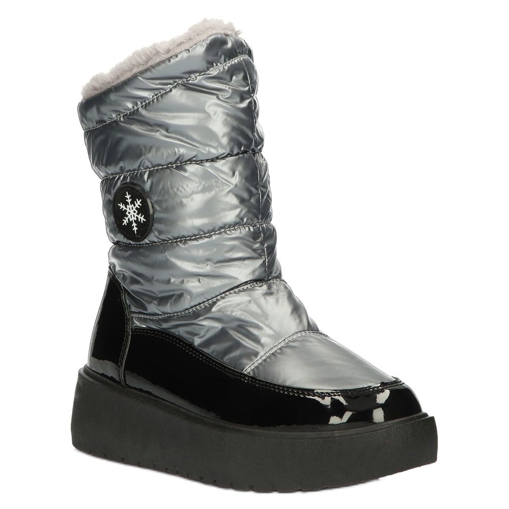Wetten Sie auf das warme und modische Erscheinungsbild in diesem Winter mit den Filippo DBT3404 -Stiefeln Śnieżynka. Aus lackiertem ökologischem Leder kombiniert mit Material in einer eleganten Kombination aus schwarzem und dunklem Silber sind sie in alltäglichen Winterstilisationen großartig. Höherer Würfelschnitt, Pelzisolierung und eine stabile Plattform sorgen für den Komfort auch bei niedrigeren Temperaturen.