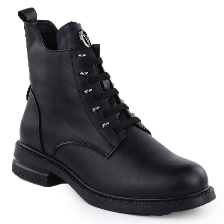 Die Stiefel zeichnen sich durch eine klassische schwarze Farbe aus, die perfekt zu verschiedenen Stylisierungen passt - von lässiger bis hin zu eleganter. Dank der Höhe des oberen von etwa 14,5 cm und einer flachen Ferse mit einer Höhe von 3,5 cm bieten sie den ganzen Tag über ausreichend Unterstützung für Fuß und Komfort.