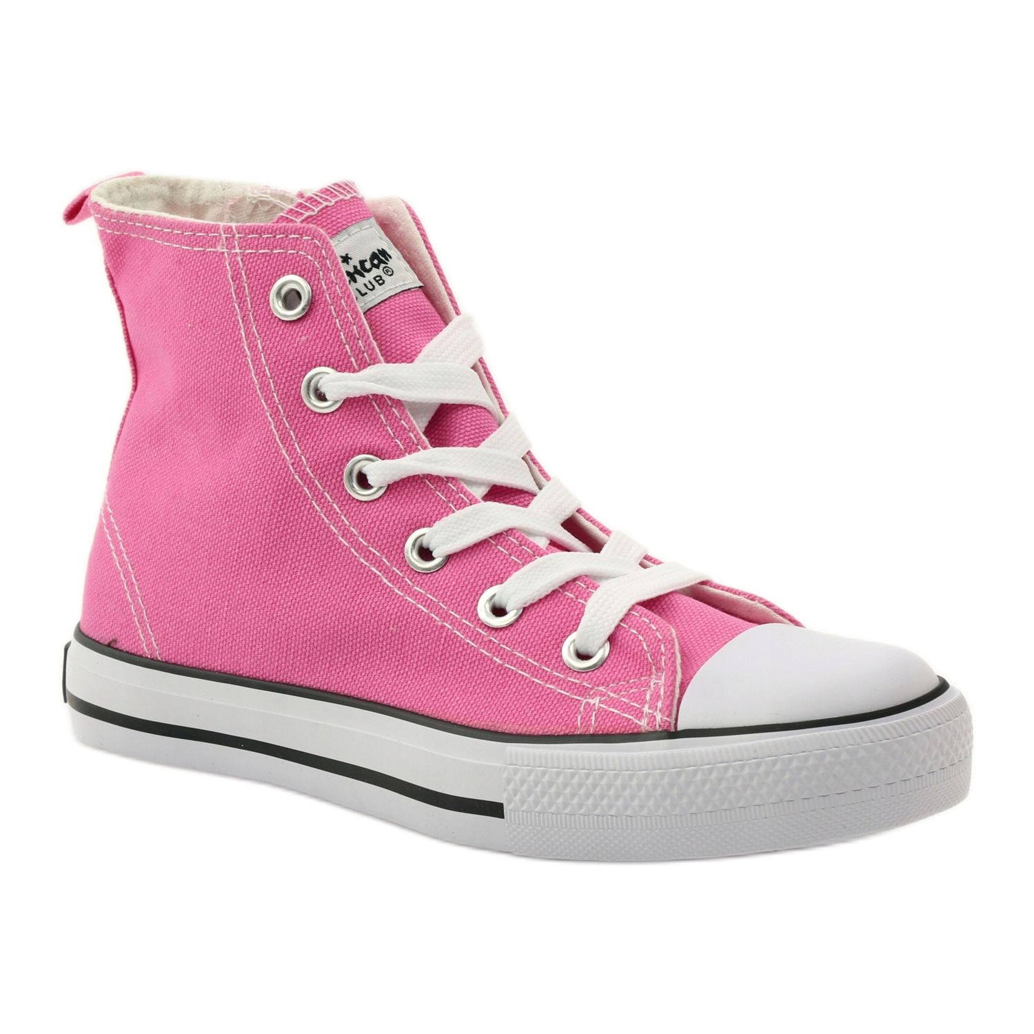 Stilvolle und praktische American Club-Sneaker für Mädchen aus hochwertigem Textilmaterial. Die klassische rosa Farbe kombiniert mit einer weißen Gummisohle sorgt für einen modischen, kindlichen Look – perfekt für die Schule, den Spielplatz und jeden Tag.