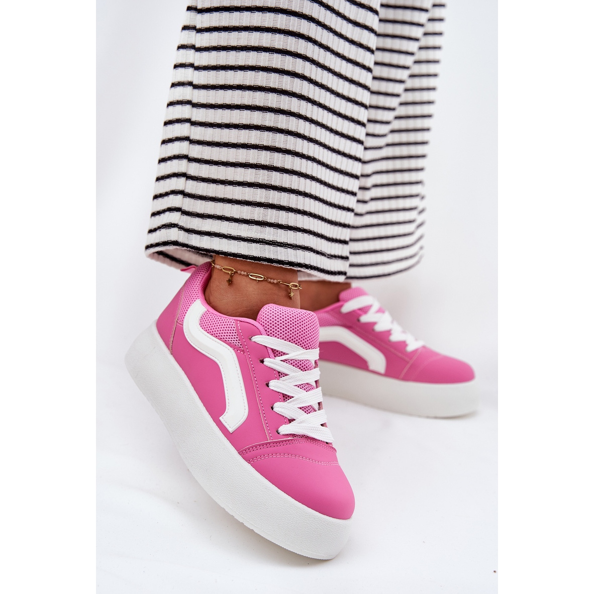 Geben Sie dank der Sneaker von Frauen auf der Plattform im Schatten von Fuchsia ein wenig Farbe in Ihre tägliche Garderobe! Diese eleganten Schuhe, die aus Öko -Leder bestehen, kombinieren moderne Stil und Komfort, die Sie jeden Tag zu schätzen wissen.