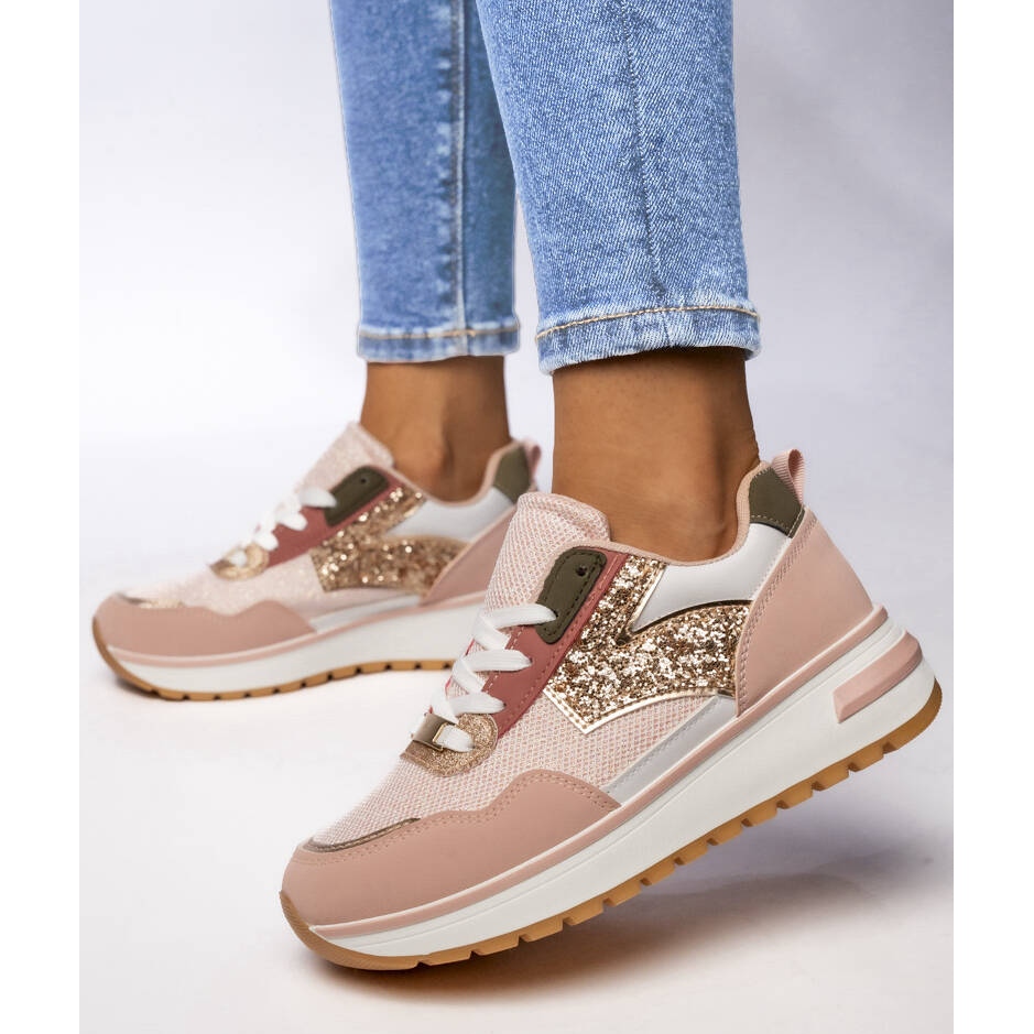 Women's Pink Sneakers ist ein Modell, das sowohl täglich als auch besondere Anlässe wirkt. Ihr universeller Stil, kombiniert mit einem modischen Muster aus metallischen und glitzernden Elementen, macht sie bei jedem Schritt zu einem äußerst attraktiven Angebot.
