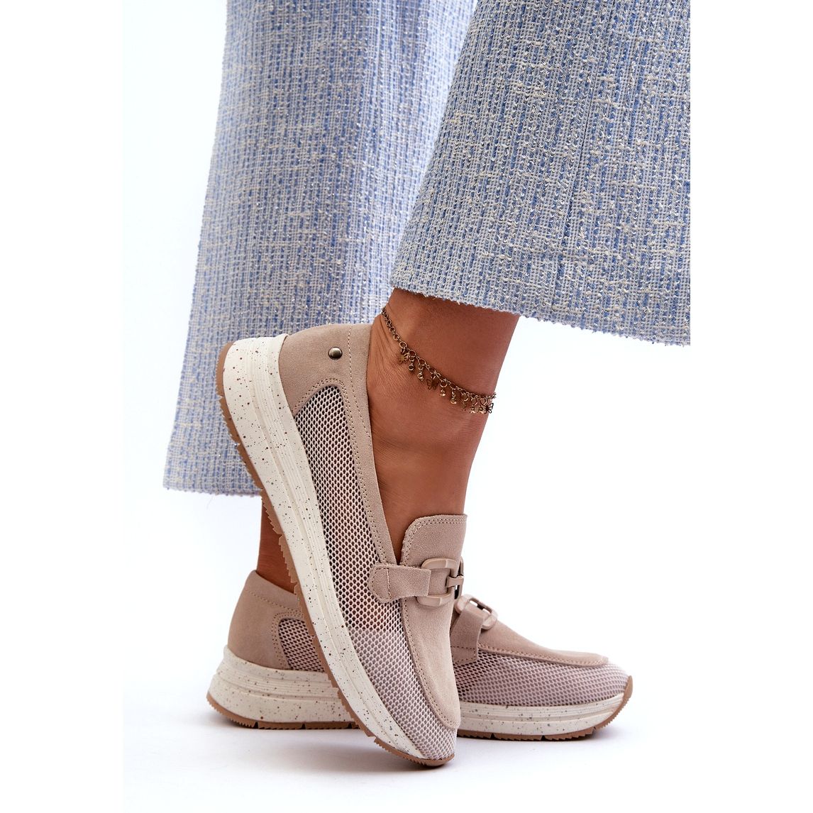 Ein unverwechselbares Element dieser Mokassins ist eine dekorative Schnalle oben, die ihnen einen eleganten Akzent verleiht und sie zur perfekten Wahl für verschiedene Gelegenheiten macht - von täglichen Spaziergängen bis hin zu formelleren Ausflügen. Darüber hinaus garantiert die Plattform mit einem empfindlichen Keil (Höhe 3,5 cm) beim Gehen Komfort, was sie nicht nur ästhetisch, sondern auch praktisch macht.