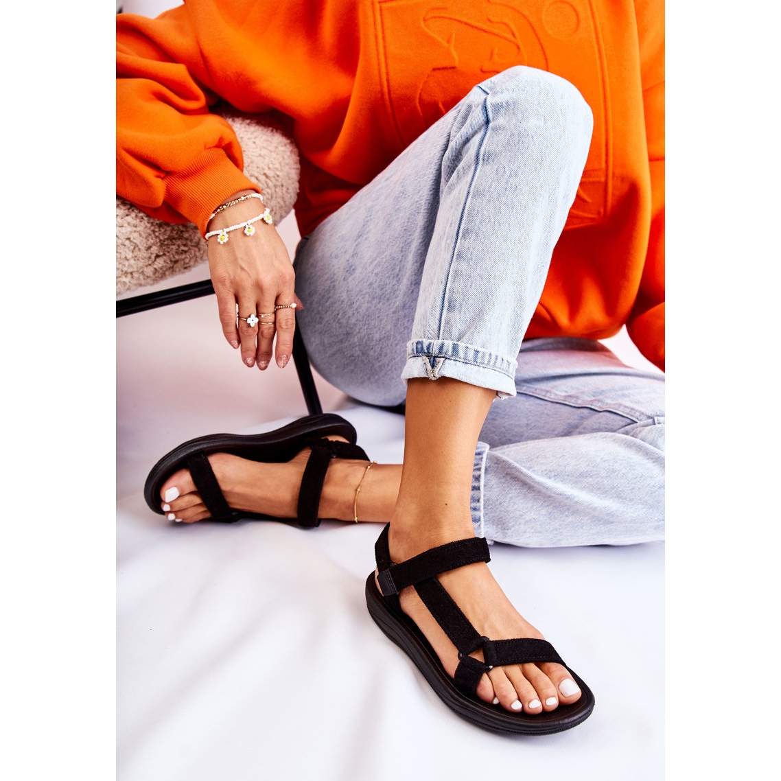 Details: Frauen Wildleder Sport schwarze Sandalen
