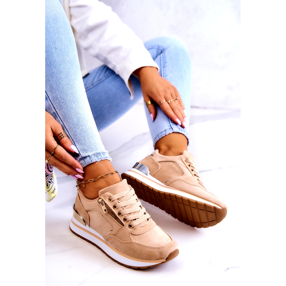 Details: Frauen Wildleder Sportschuhe auf der Plattform dunkler Beige