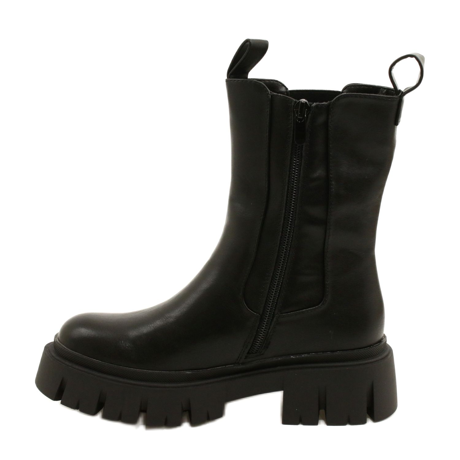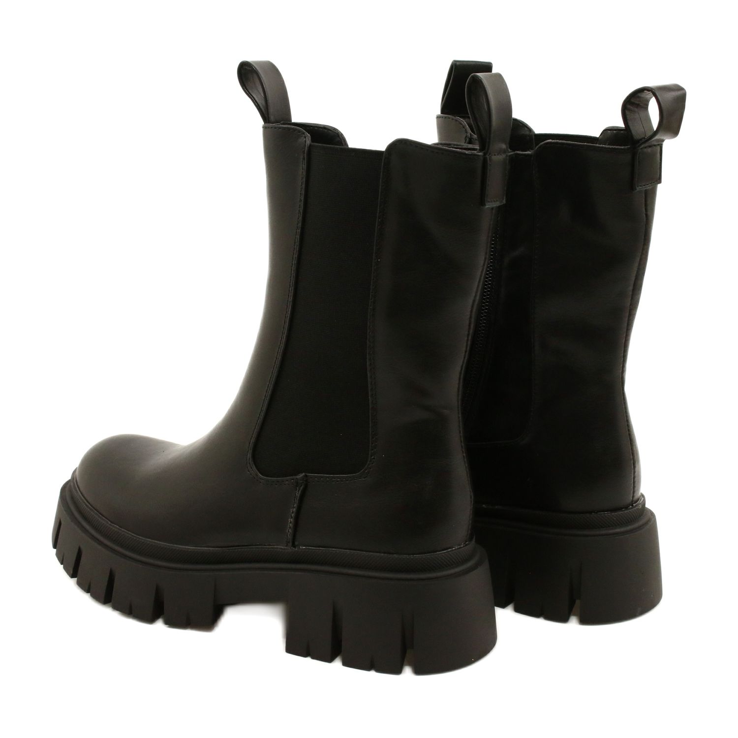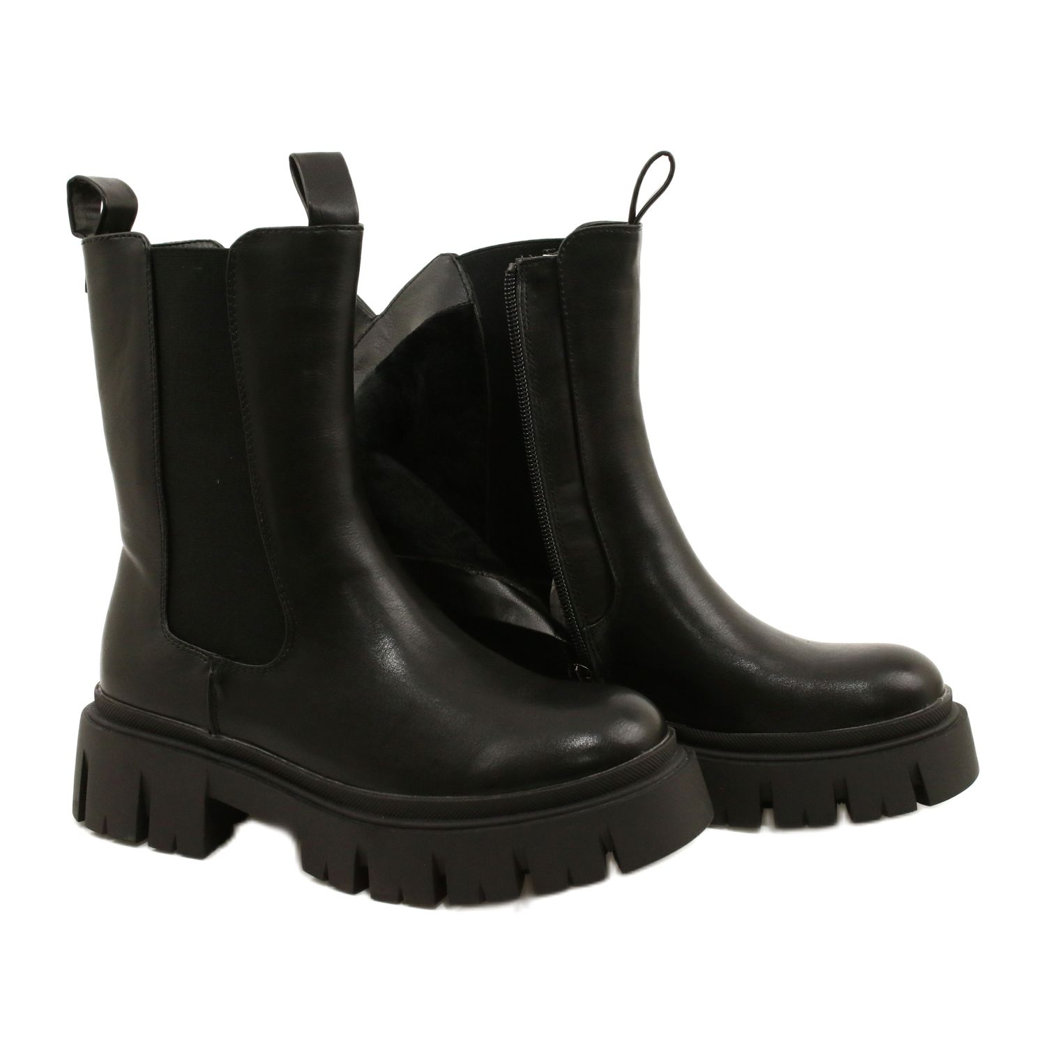 Machen Sie sich bereit für kühlere Tage wie: Black Workers Evento ist eine Kombination aus einer Stadt und einer praktischen Erwärmung. Der äußere Teil aus ökologischem Leder umhüllt sanft den Fuß, und das weiche Fellstoff im Innenraum sorgt selbst bei niedrigen Temperaturen Wärme und Komfort. Der auf den inneren Seiten platzierte Reißverschluss ermöglicht schnelles und bequemes Anziehen, und eine stabile Sohle mit einer Höhe von etwa 4,5 cm schützt vor kalten und entfernten Spaziergängen.