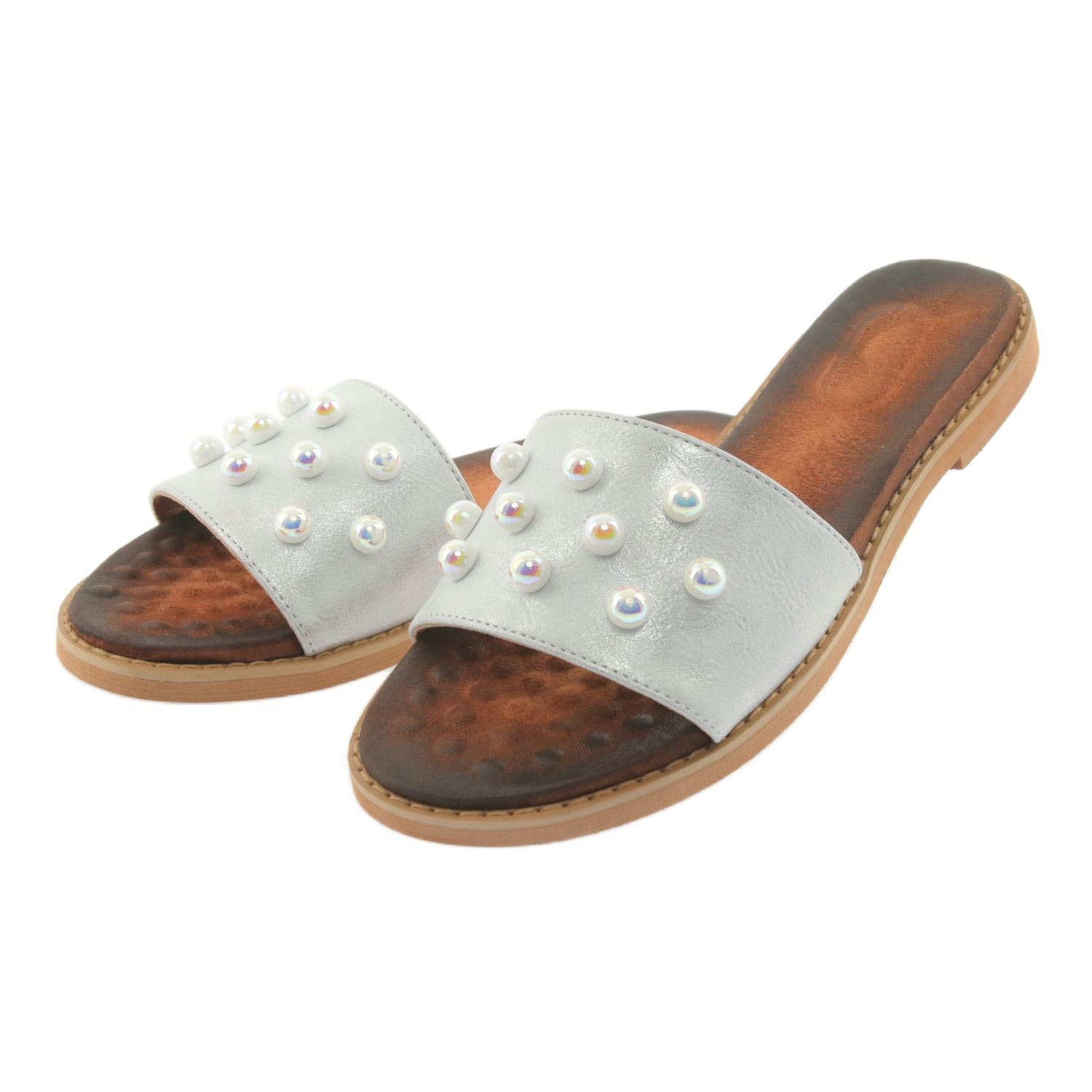 Das Obermaterial dieser Flip-Flops hat ein interessantes Design und der Riemen mit dekorativen Perlen verleiht ihnen einen einzigartigen Charakter. Sie sind in der eleganten Silberfarbe erhältlich und passen perfekt zu den neuesten Trends. Die Flip-Flops haben keine Nase, was für Freiheit und Komfort bei alltäglichen Aktivitäten sorgt.
