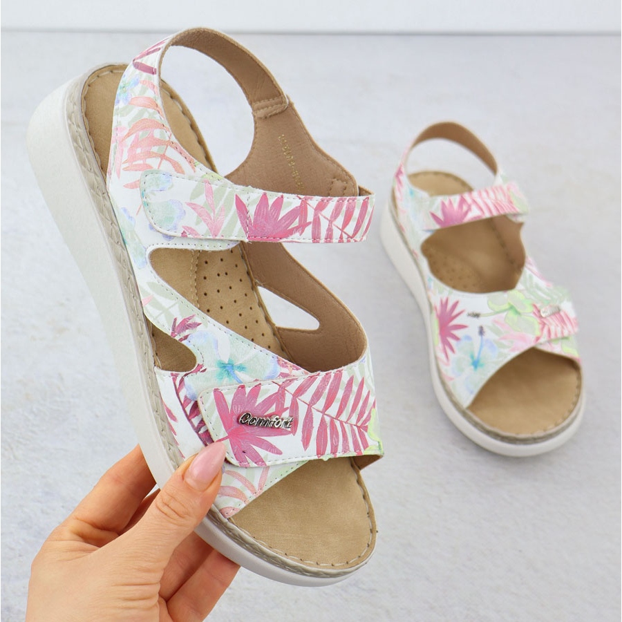 Das Blumenmuster auf einem weißen Hintergrund verleiht ihnen Leichtigkeit und Frische, und die einzige Dicke von 2 cm und 4 cm Keilhöhe sorgt für viele Stunden Komfort. Sandalen aus ökologischem Leder sind nicht nur ästhetisch, sondern auch umweltfreundlich. Der weiche ökologische Ledereinsatz kümmert sich um den Komfort der Füße, und der Klettverschluss erleichtert das Anziehen und die Anpassung an die individuellen Bedürfnisse.