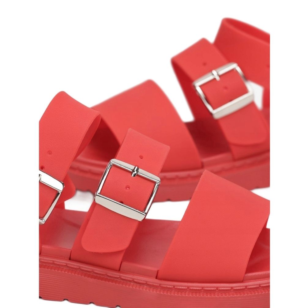 Moderne Sportsandalen Vices 2212-64 in einer intensiven roten Farbe kombinieren Komfort mit einem modischen Look. Die niedrige 3,5 -cm -Plattform bietet eine stabile Unterstützung, und der Beschützer und die Groove der Sohlen sorgen für eine Haftung während des täglichen Gebrauchs. Das Modell, das ausschließlich aus Gummi -Kunststoff besteht, ist leicht, schmutzig und leicht zu versorgen.