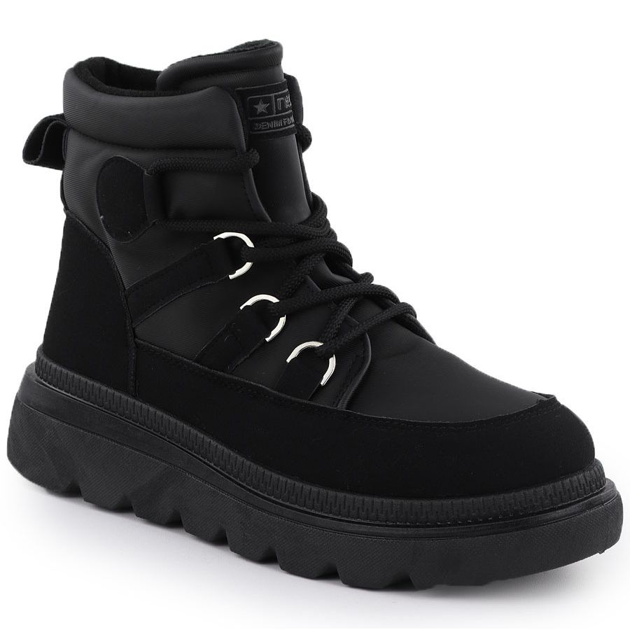 Ihre eleganten schwarzen Farben und eine modische dekorative Plattform sind eine hervorragende Option für kühlere Tage. Die Höhe des oberen von etwa 13 cm bedeutet, dass die Stiefel die Beine modellieren und gleichzeitig einen angemessenen Schutz vor Kälte bieten. Die Futter und ein Einsatz aus weichem Fell erhitzen die Füße perfekt und bieten das Vergnügen, auch während der kältesten Tage zu tragen.