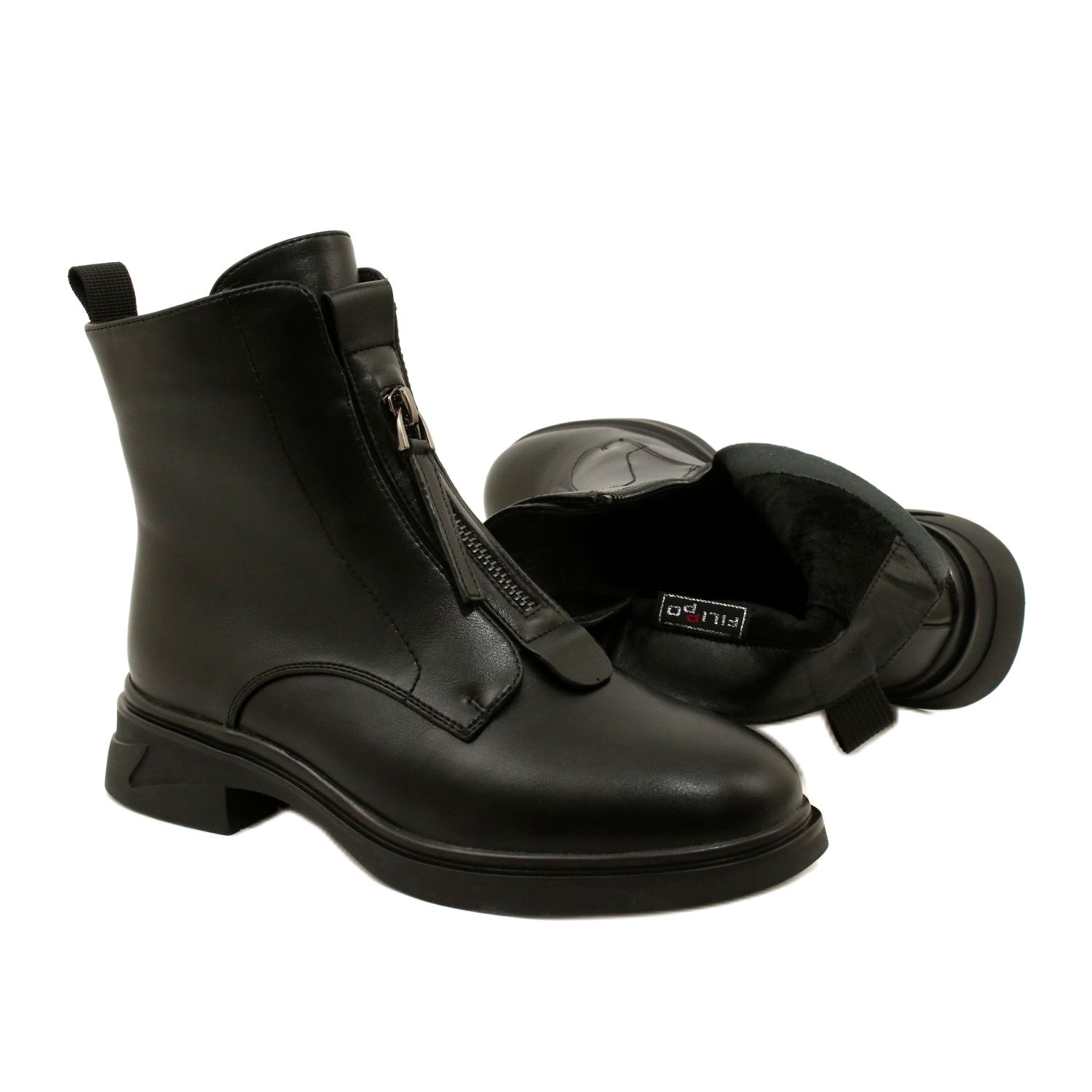 Elegante und gleichzeitig funktionell-diese schwarzen Filippo-Stiefel sind ein Muss in der Garderobe jeder Frau, die die Klassiker mit einem Hauch von Moderne schätzt. Hergestellt aus ökologischem Leder, mit einem dekorativen Schieberegler auf der Vorderseite und einem angenehm isolierten Einsatz aus dickem Fell garantieren Sie selbst an kälteren Tagen Komfort und Wärme. Eine niedrige, stabile Ferse (3,5 cm) und eine abgerundete Nase lassen die Schuhe den ganzen Tag zu tragen.