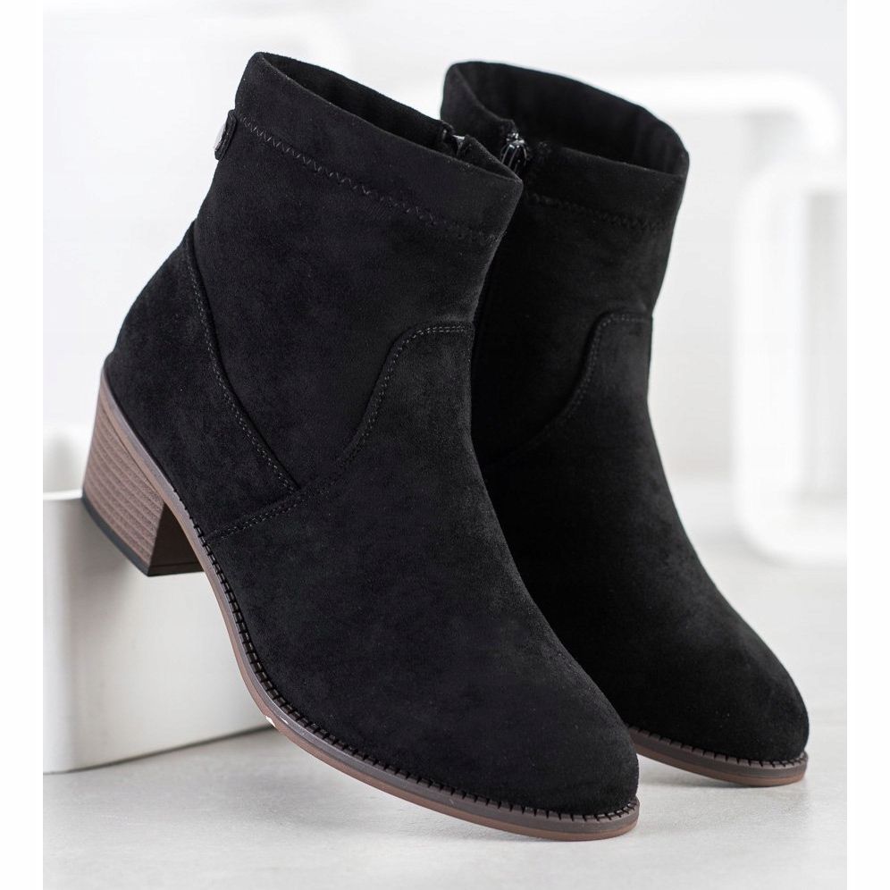 Die aus hochwertigem Wildlederimitat gefertigten Stiefeletten verfügen über eine klassische runde Spitze und ihr eleganter 5,5-cm-Absatz verleiht dezenten Charme. Der 12–13 cm hohe Schaft sorgt für ausreichenden Knöchelhalt, was sie zu einer hervorragenden Wahl für kältere Tage macht. Darüber hinaus sorgt die Innenisolierung dafür, dass Ihre Füße auch an den kältesten Tagen nicht frieren.