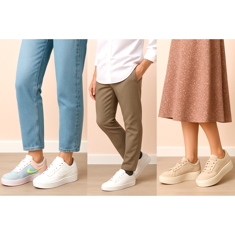 Die Frühlingspalette der Sneakers -Farben im Jahr 2025 spiegelt den Optimismus und die Frische der neuen Saison wider. Delicate Pastells dominieren - Pulverrosa, Minzgrün und Lavendel, die sich perfekt in Frühlingsstilisierungen einfügen. Sie können klassisches Weiß nicht vergessen, das mit subtilen farbenfrohen Akzenten in erfrischter Form zurückkehrt. Galle in Butter und warmem Beige sind die nächsten Farben, die auf den Straßen der Stadt herrschen.