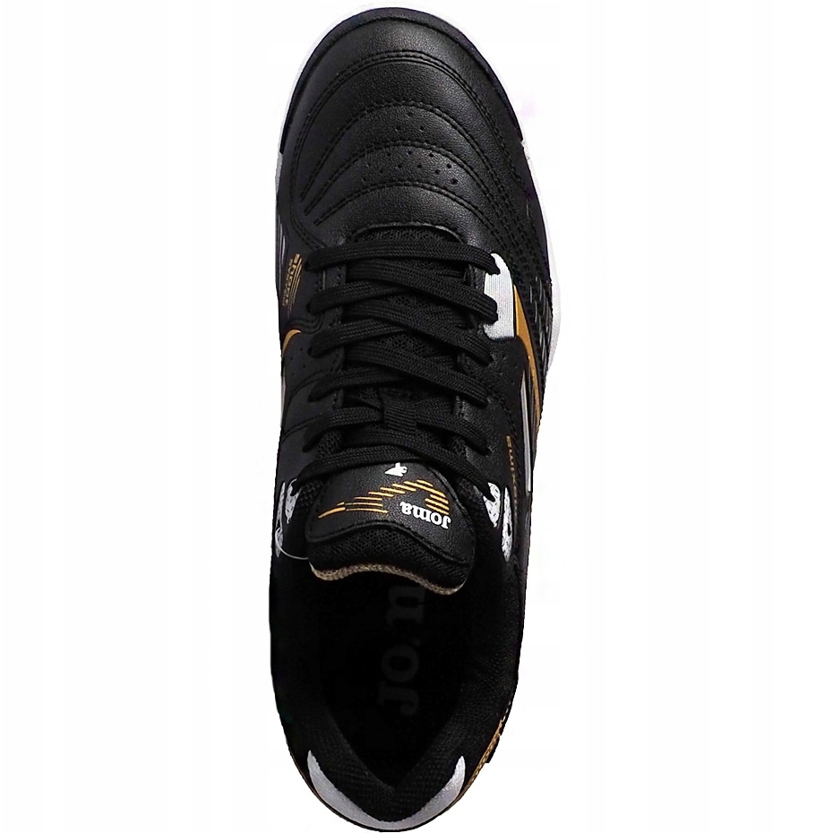 Dynamische, langlebige Indoor -Hallen Joma Maxima 901 Sala für Männer, die auf harten inneren Oberflächen spielen. Das schwarze, synthetische Obermaterial mit präzisen Nähten und Lüftungslöchern sorgt für eine gewisse Kontrolle über den Ball und den Komfort während des Spiels. Die Stärkung der Impact -Zone (Shoot/Durability -Technologie) erhöht die Abriebfestigkeit und eine speziell geformte Sohle mit dem Schutzsystem verbessert die Adhäsion und Stabilität.