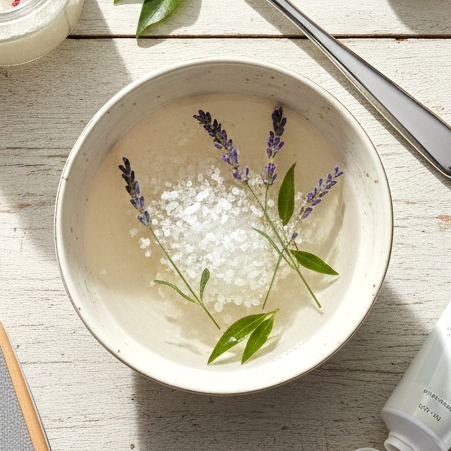 Beginnen Sie mit einem warmen Fußbad (10-15 Minuten). Fügen Sie dem Wasser ein paar Esslöffel Meersalz oder Bittersalz hinzu – dadurch wird die Hornhaut weicher und lässt sich leichter entfernen. Sie können auch ein paar Tropfen Lavendel- oder Teebaumöl hinzufügen, die antibakterielle und entspannende Eigenschaften haben.