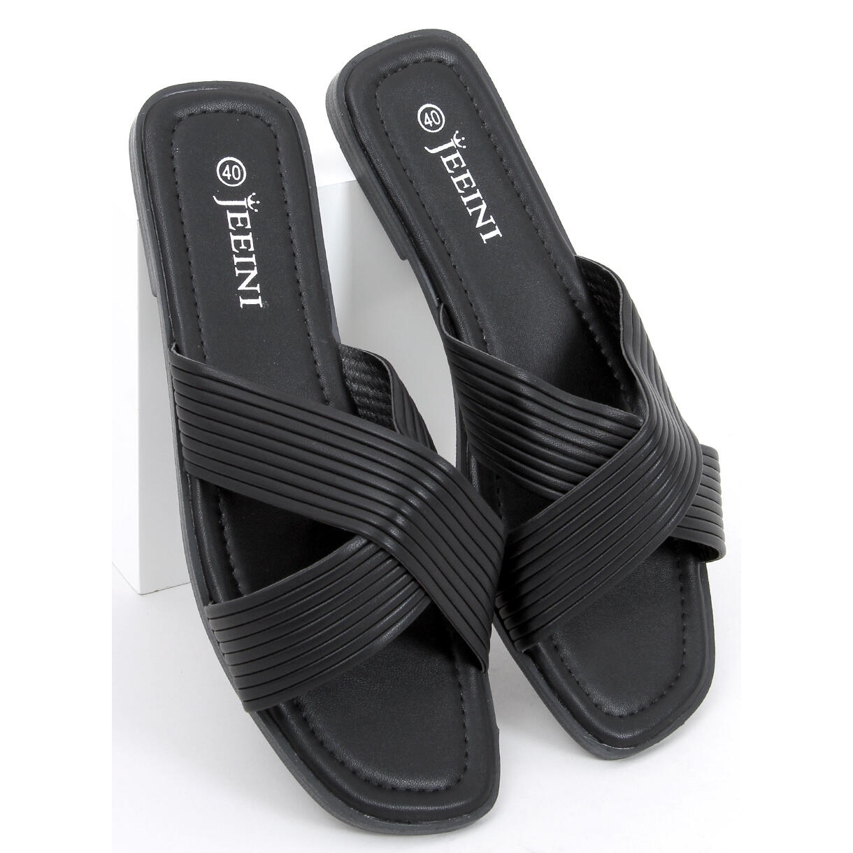 Inna marka Fuzzy Schwarze Damenhausschuhe