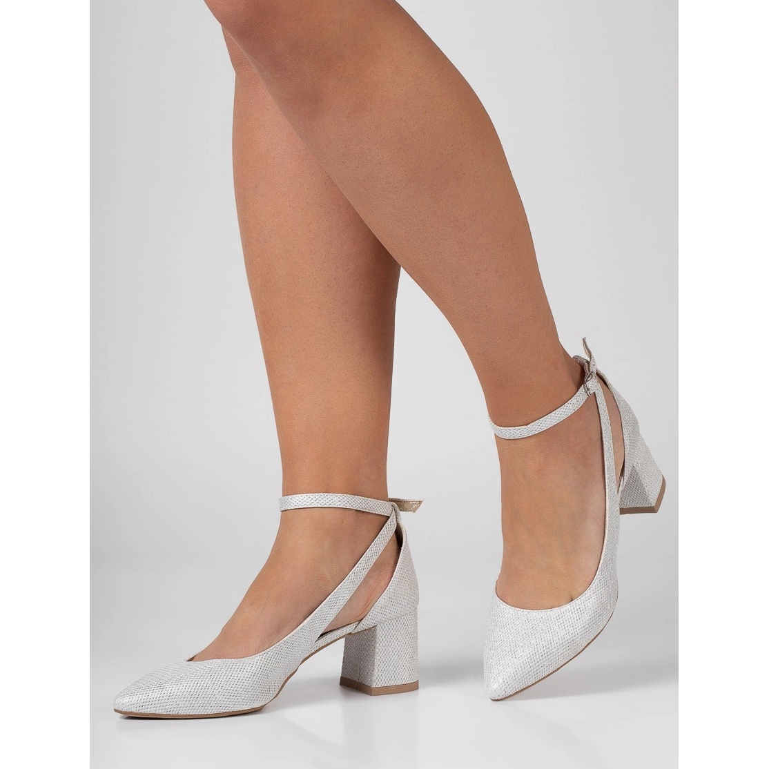 Wir präsentieren Pumpen aus der Butdam -Kollektion - niedrige Schuhe auf einem Beitrag mit einem schönen silbernen Glitzer, perfekt für viele Gelegenheiten! Das GABI -Modell kombiniert die neuesten Modetrends und die Bequemlichkeit des Tragens, was es zu einer guten Wahl für die Hochzeit und andere gelegentliche Veranstaltungen macht.