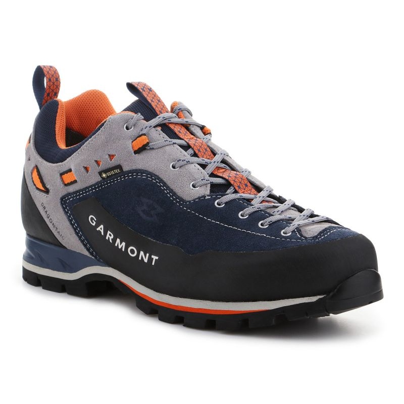 Garmont Dragontail Mnt GTX M (002471) Schuhe -männliche, niedrige Trekkingschuhe in Marine -orange -grauen (Marine/Grau/Orange) Farben. Eine Kombination aus Stärke, Stabilität und Komfort auf dem Feld und in der Stadt.