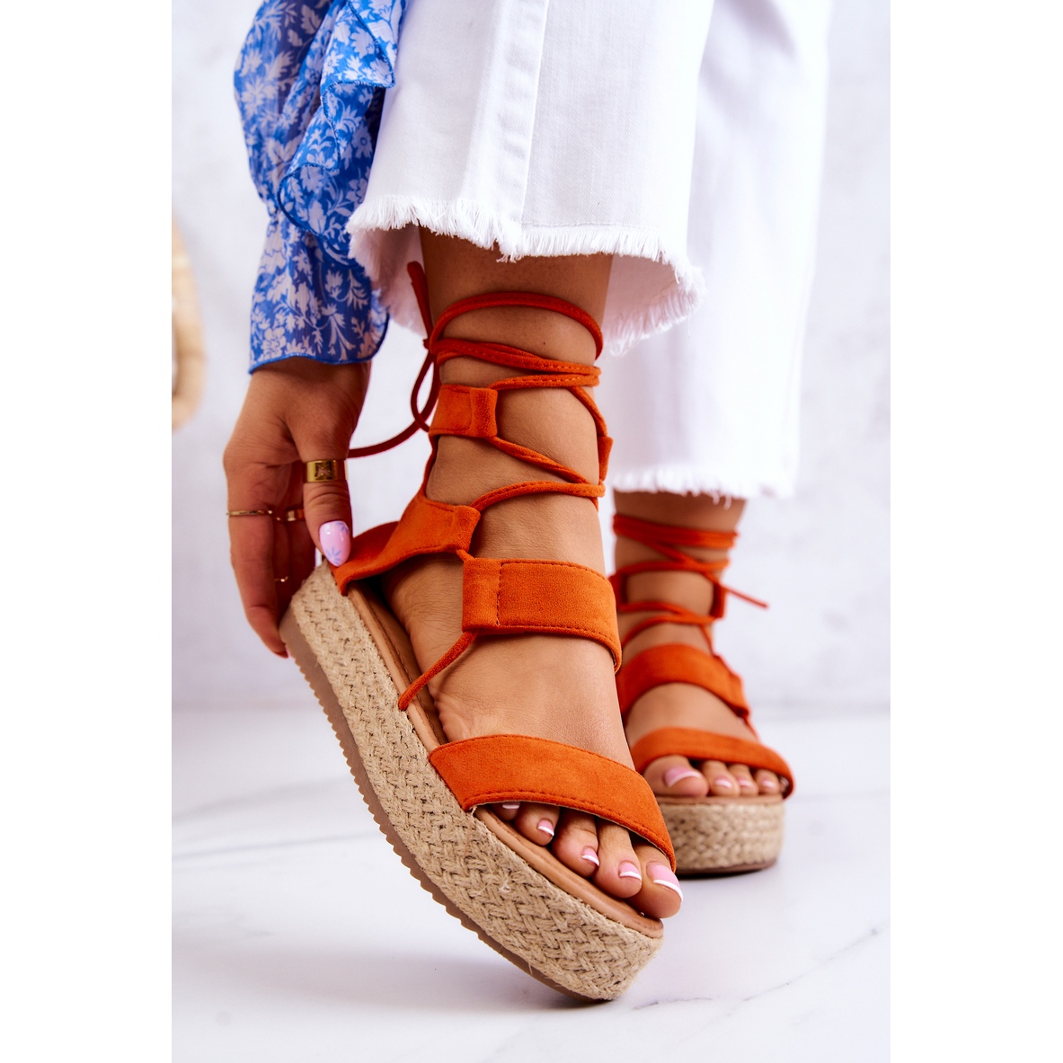 Wir präsentieren Ihnen die Damen-Plateausandalen FW1 in Orange, die sowohl optisch als auch tragefreundlich begeistern. Diese wunderschönen Espadrilles zum Schnüren eignen sich perfekt für jeden Anlass – vom alltäglichen Spaziergang bis zum Abend mit Freunden.