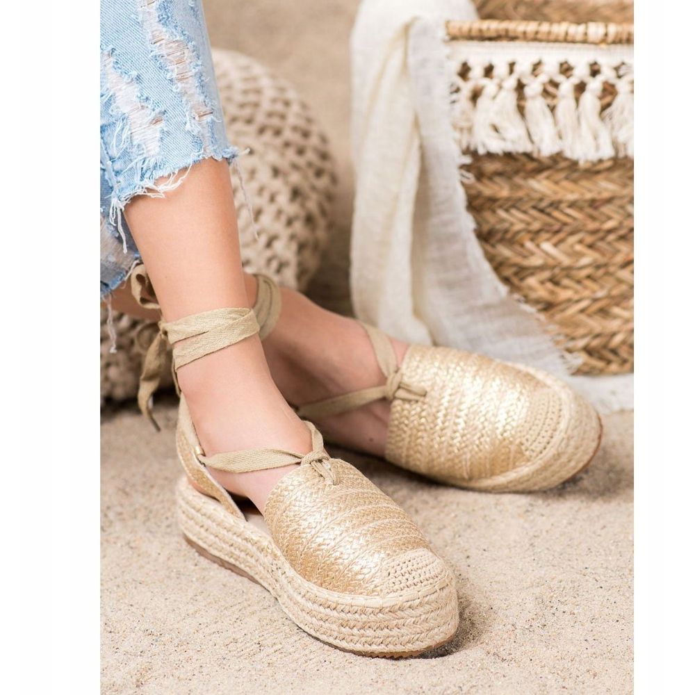 Entdecken Sie die extravaganten Seastar Espadrille-Sandalen in goldener Farbe, die perfekt zu Ihrem Urlaubs-Styling passen. Diese dezenten Schuhe, komplett aus strohähnlichem Material gefertigt, sind die perfekte Wahl für Liebhaber des leichten Boho-Stils.