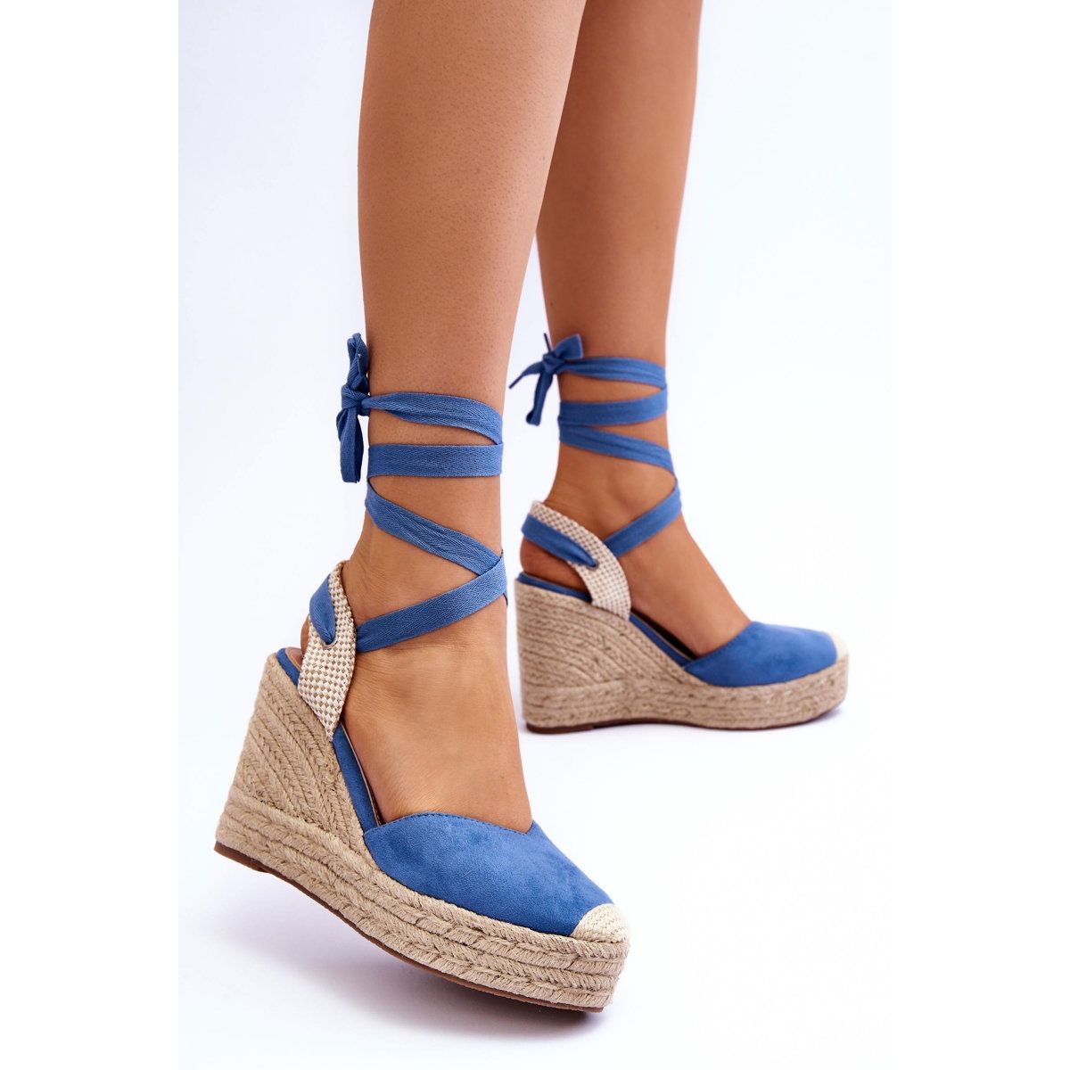**Sandalen zum Binden mit hohem Keilabsatz, Blau Lendy**