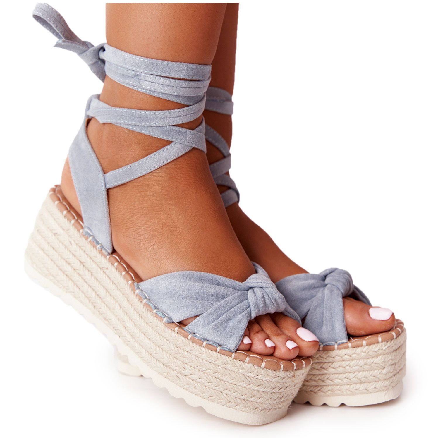 PS1 PS1 Gebundene Sandalen auf einer blauen geflochtenen Plattform La Palma beige