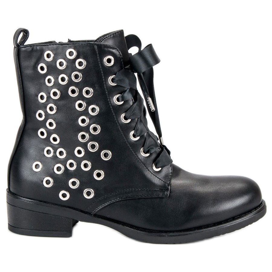 Sind Sie auf der Suche nach Schuhen, die jedem Styling Charakter verleihen? Hier ist die perfekte Wahl! Schwarze Worker-Schnürschuhe sind das perfekte Accessoire für Frauen, die ihre Individualität und ihren Stil unterstreichen möchten. Ihr elegantes Obermaterial, verziert mit einzigartigen Akzenten in Form von silbernen Strasssteinen an der Seite des Schuhs, verleiht ihnen einen räuberischen und zugleich modischen Look.