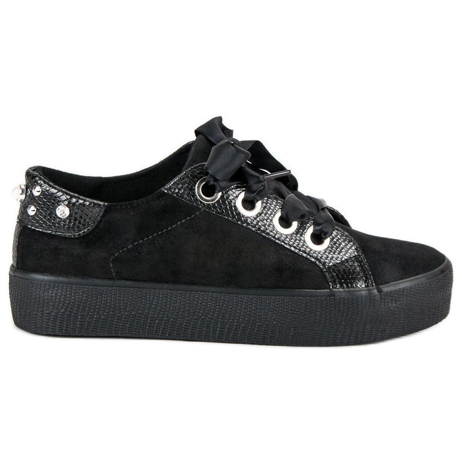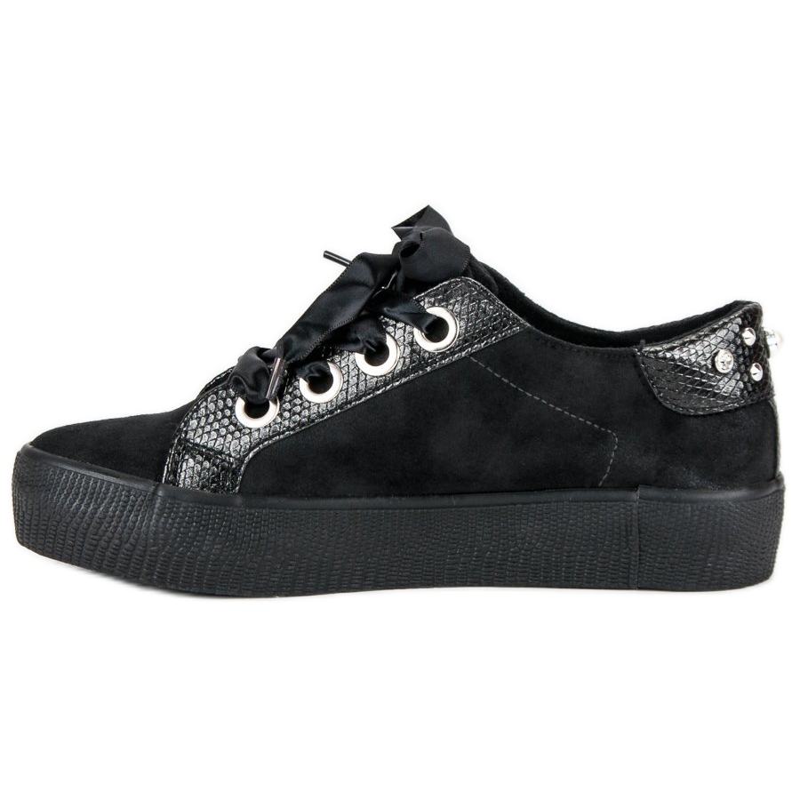 Entdecken Sie die perfekte Kombination aus Stil und Komfort mit Schnür-Sportschuhen von Bestelle. Diese Damen-Sneaker in klassischem Schwarz sind die perfekte Ergänzung zu jedem Alltags-Styling. Dank ihres universellen Designs funktionieren sie sowohl im Frühling und Sommer als auch an kälteren Herbst- oder Wintertagen gut und sind das perfekte variable Schuhwerk.