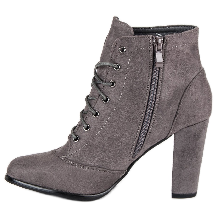 Entdecken Sie Eleganz und Komfort mit den hochhackigen Stiefeletten von Juliet! Diese grauen Schnürstiefeletten sind die perfekte Wahl für Damen, die klassischen Stil mit modernem Stil kombinieren möchten. Sie bestehen aus ökologischem Wildleder höchster Qualität und bieten nicht nur ein ästhetisches Aussehen, sondern auch Tragekomfort.