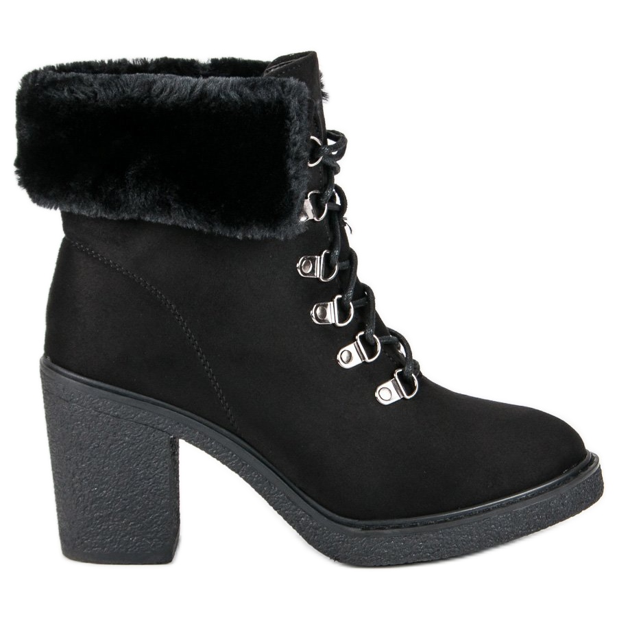 Entdecken Sie Komfort und Stil mit den hochhackigen Stiefeletten Juliet in elegantem Schwarz. Diese einzigartigen Stiefeletten mit Schnürung sind die perfekte Kombination aus sportlichem Komfort und originellem Design, perfekt für jede Situation. Aus hochwertigem ökologischem Wildleder gefertigt, sind sie nicht nur ästhetisch, sondern auch funktional – sie schützen gut vor Kälte und Feuchtigkeit und ihre Kratzfestigkeit sorgt für eine langfristige Nutzung.