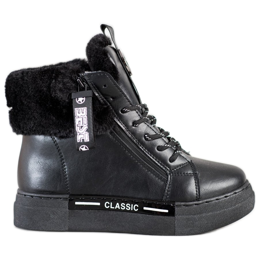 Details: Weide Gebundene Stiefeletten mit Fell schwarz