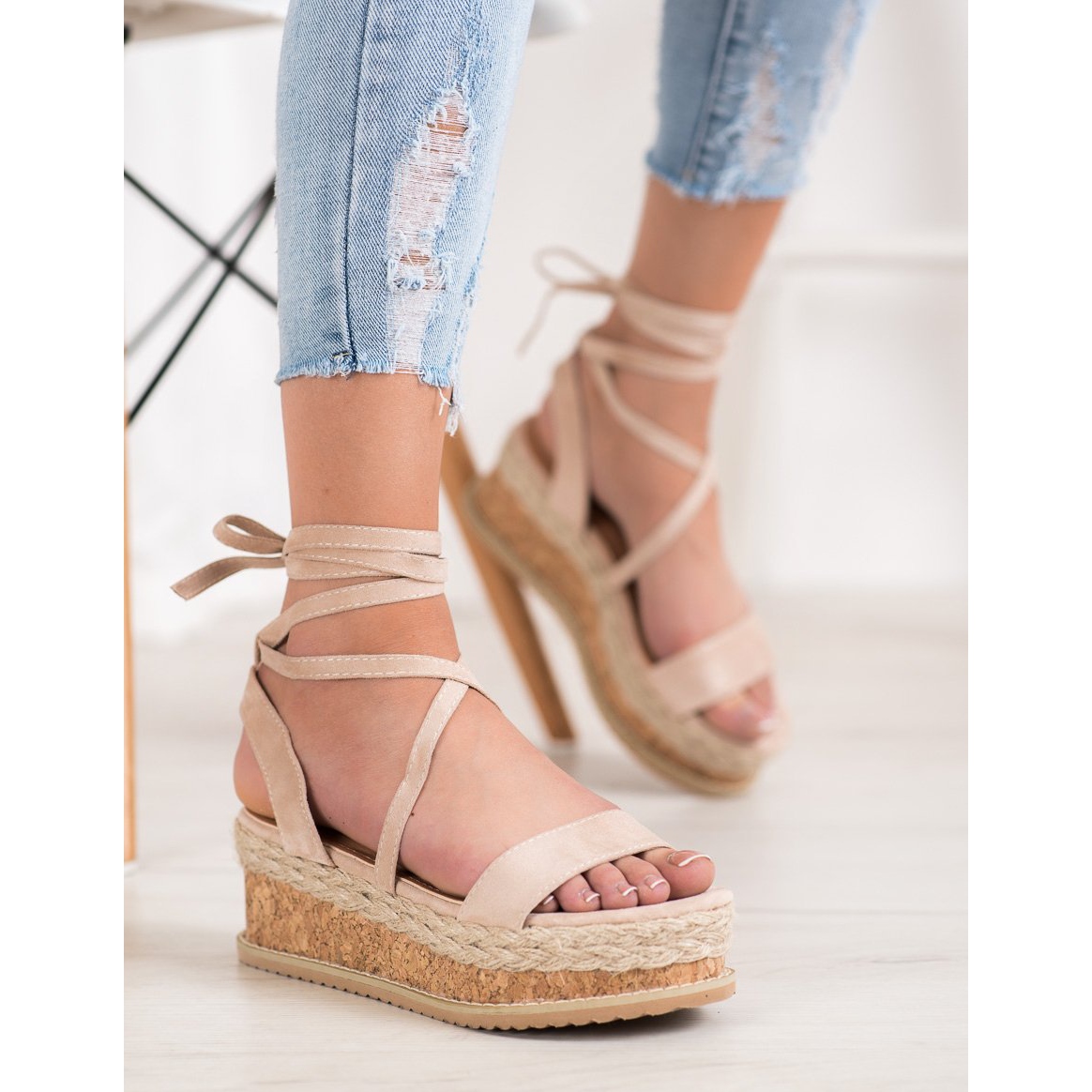 Seastar-Sandalen zeichnen sich durch eine synthetische Sohle mit Profil aus, die für guten Halt sorgt, und ihr hohes Plateau von 4,5 cm und der Keilabsatz von 6,5 cm sorgen für Eleganz. Sie bestehen aus Wildlederimitat und sind nicht nur ästhetisch, sondern auch praktisch, da sie über eine Innensohle aus ökologischem Leder verfügen, die Ihre Füße pflegt.
