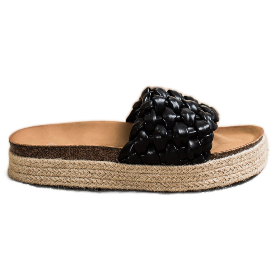 Details: SHELOVET Geflochtene Espadrilles Flip-Flops schwarz