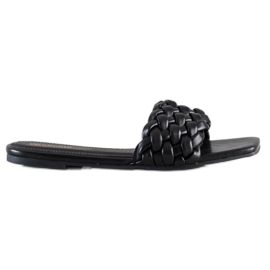 Goodin Goodin Geflochtene Hausschuhe aus Öko-Leder schwarz