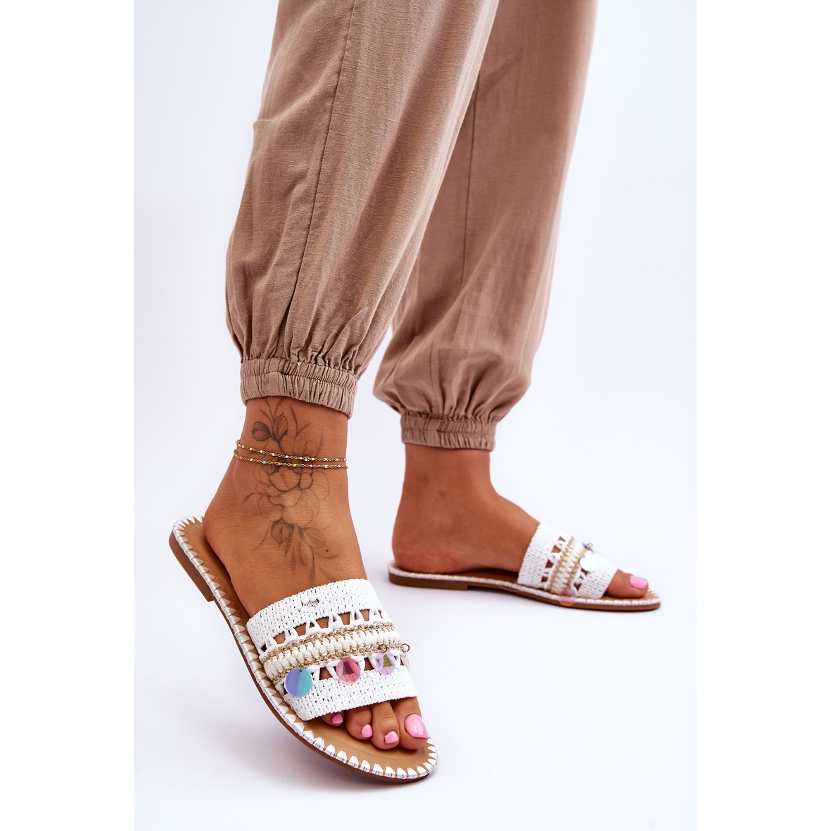 Inna marka Geflochtene verzierte Hausschuhe für Damen White Millano weiß